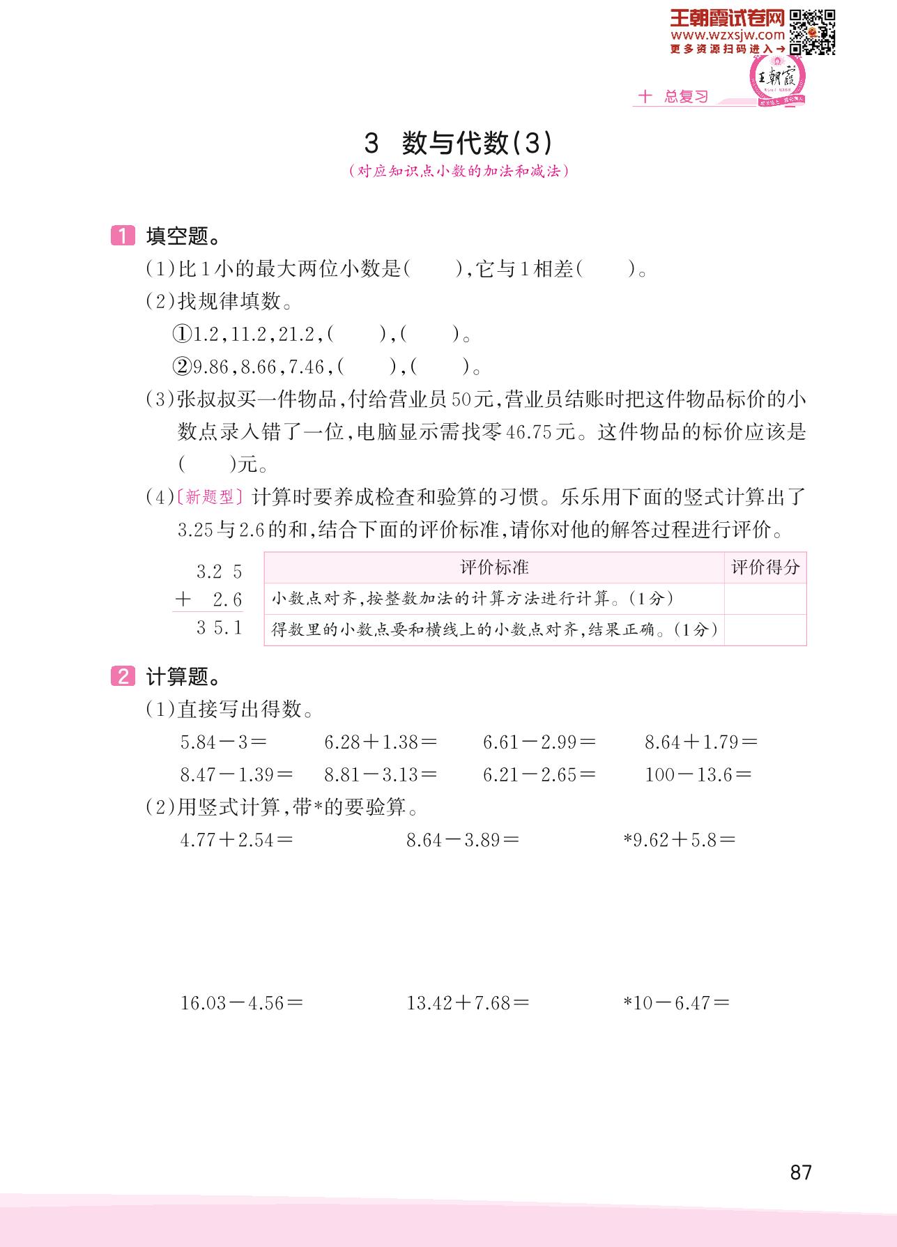 2023下册四年级数学人教版 十 总复习——3 数与代数(3)