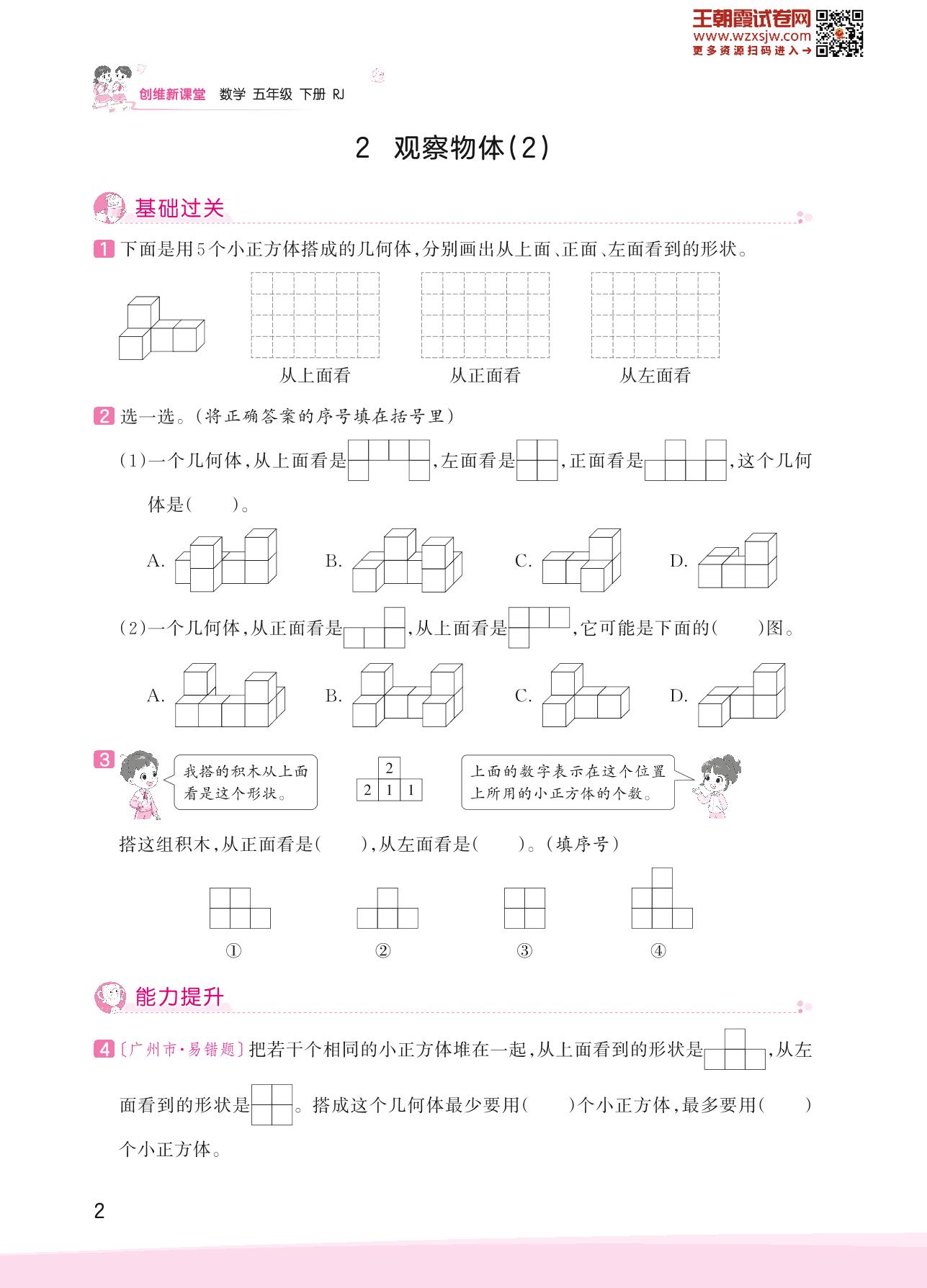 2023下册五年级数学人教版 一 观察物体(三)——2 观察物体(2)