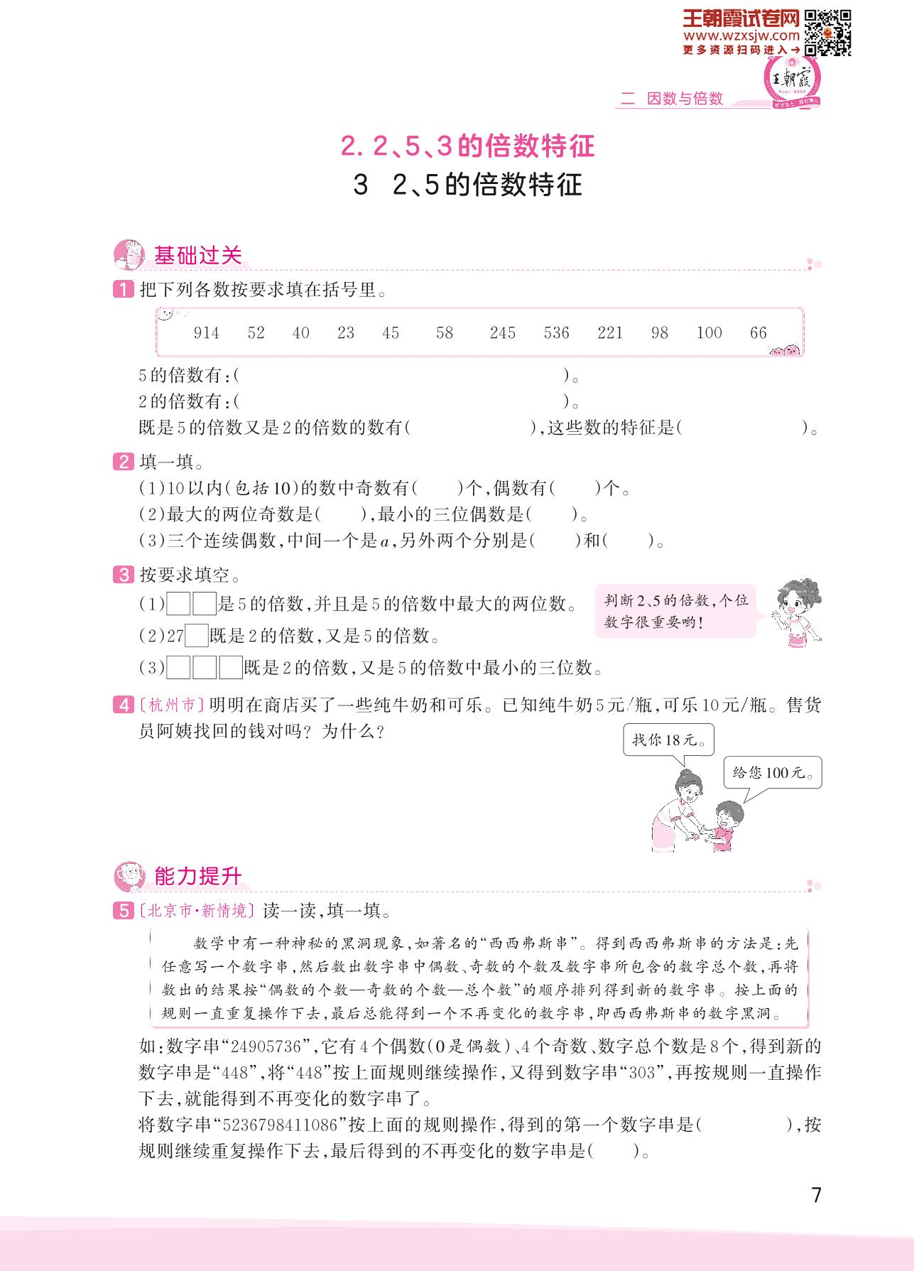 2023下册五年级数学人教版 二 因数和倍数——3 2、5的倍数