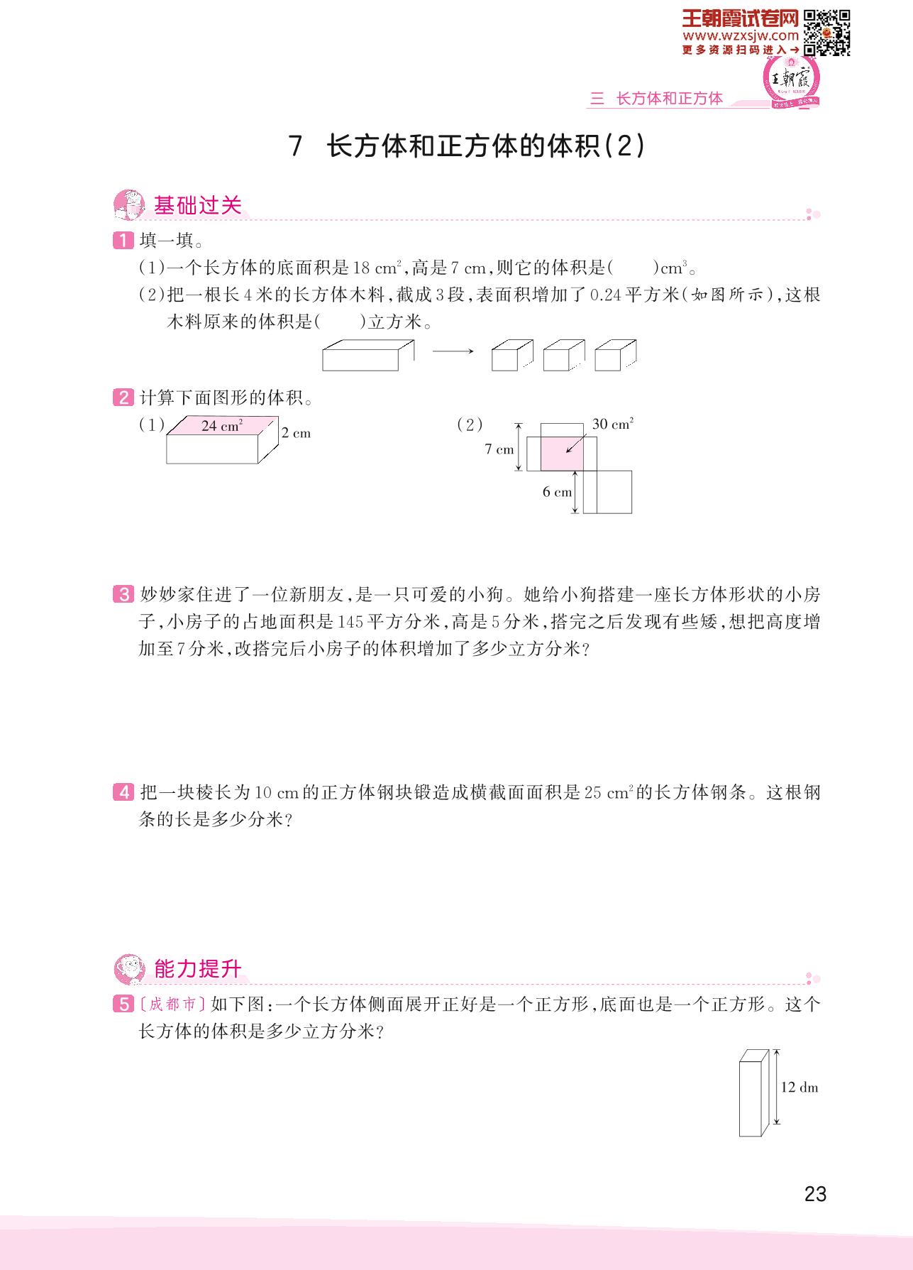 2023下册五年级数学人教版 三 长方体和正方体——7 长方体和正方体的体积(2)