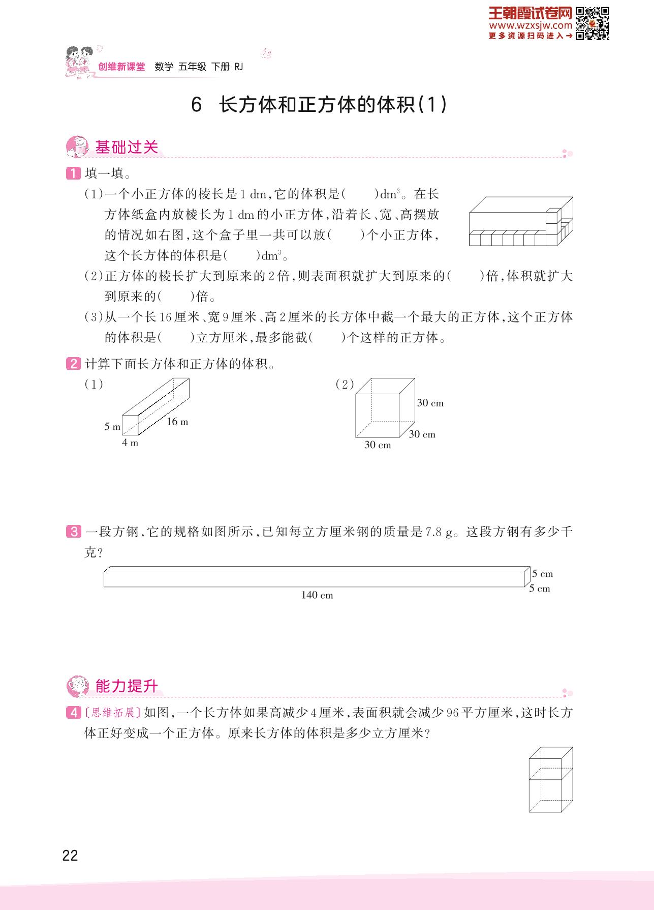 2023下册五年级数学人教版 三 长方体和正方体——6 长方体和正方体的体积(1)