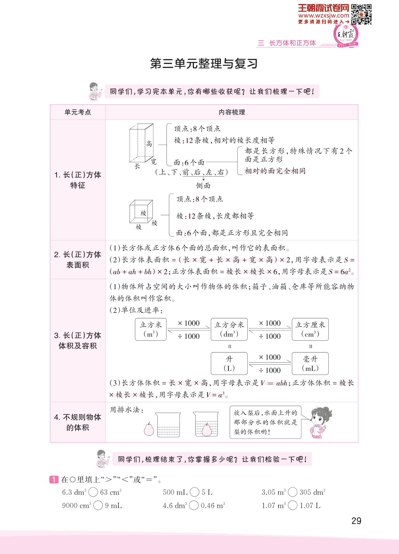 2023下册五年级数学人教版 第三单元整理与复习