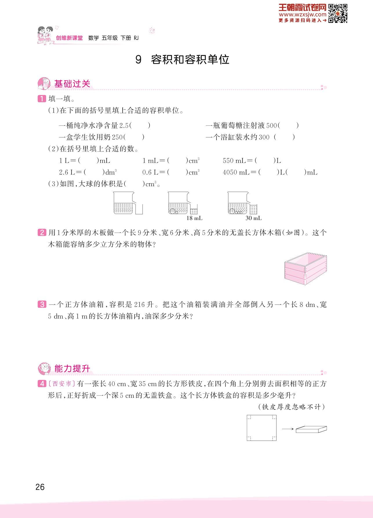 2023下册五年级数学人教版 三 长方体和正方体——9 容积和容积单位