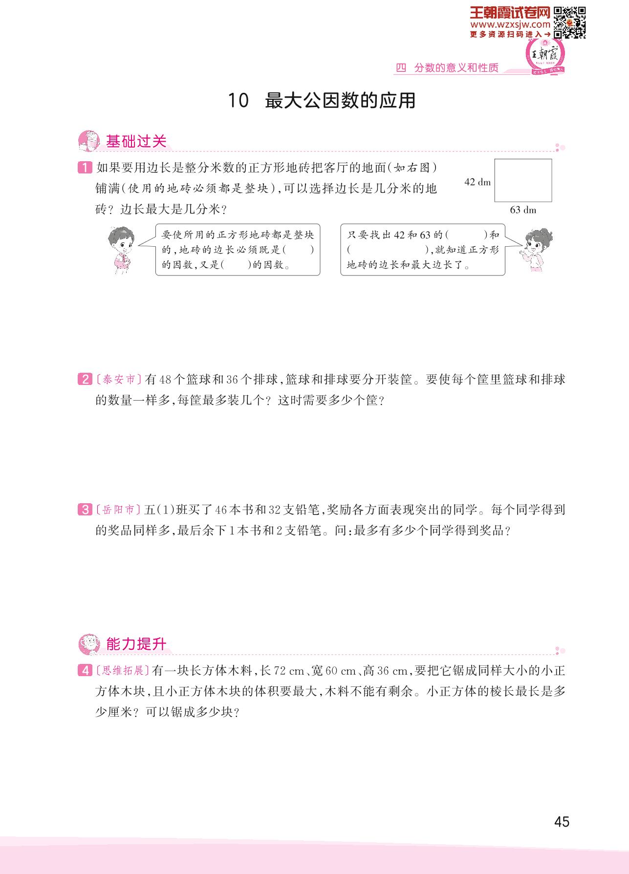2023下册五年级数学人教版 四 分数的意义和性质——10 最大公因数的应用