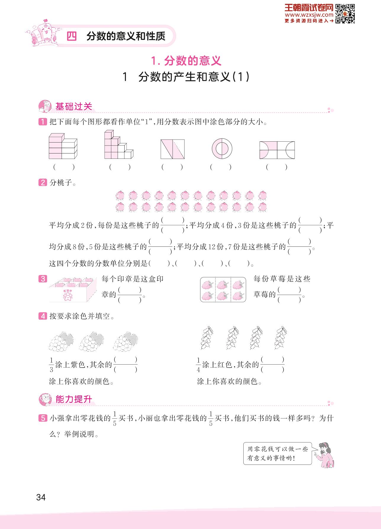 2023下册五年级数学人教版 四 分数的意义和性质——1 分数的产生和意义(1)