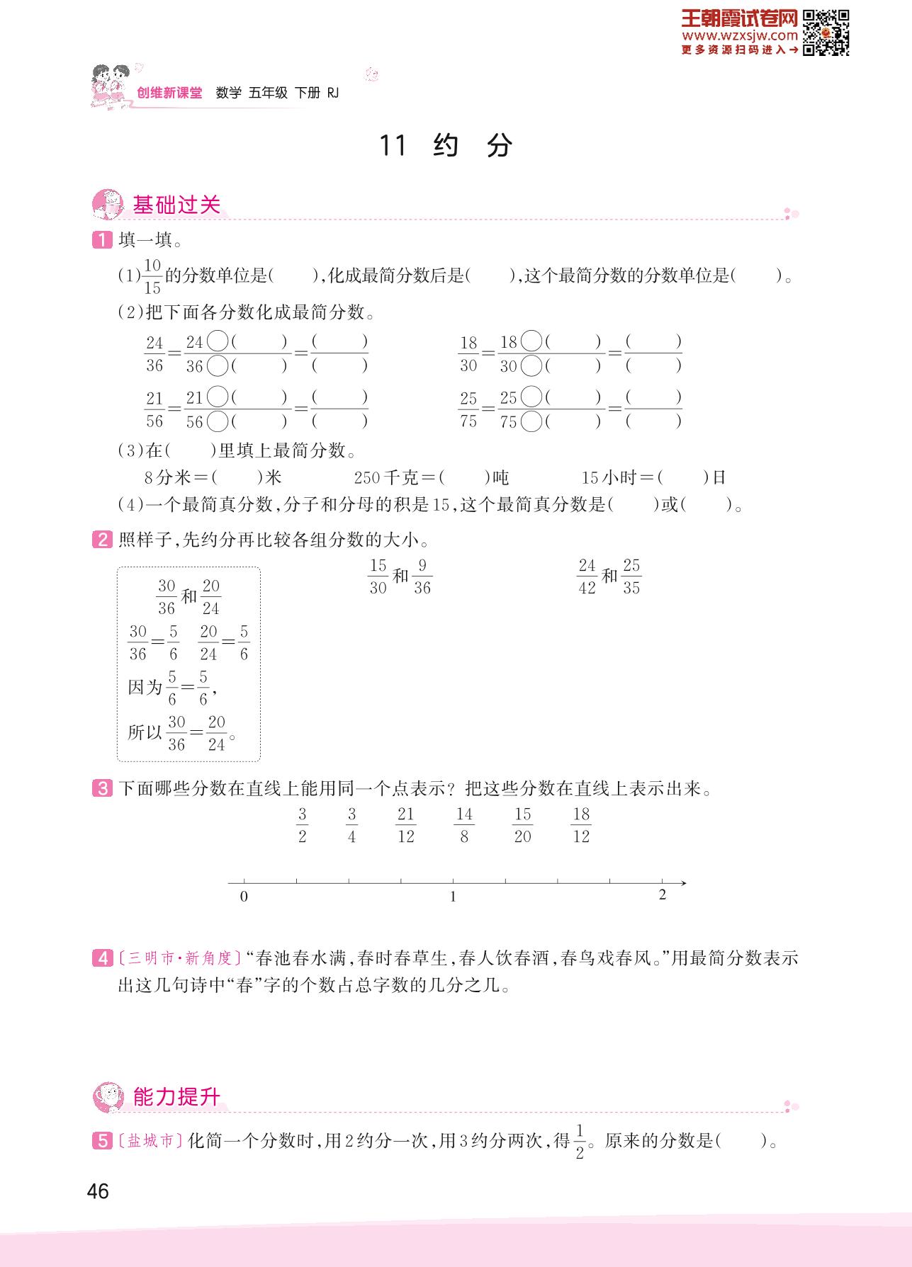 2023下册五年级数学人教版 四 分数的意义和性质——11 约分