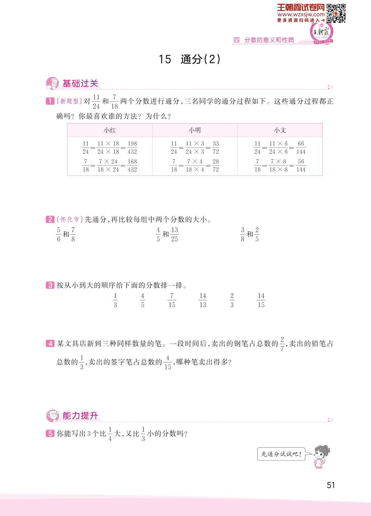 2023下册五年级数学人教版 四 分数的意义和性质——15 通分(2)