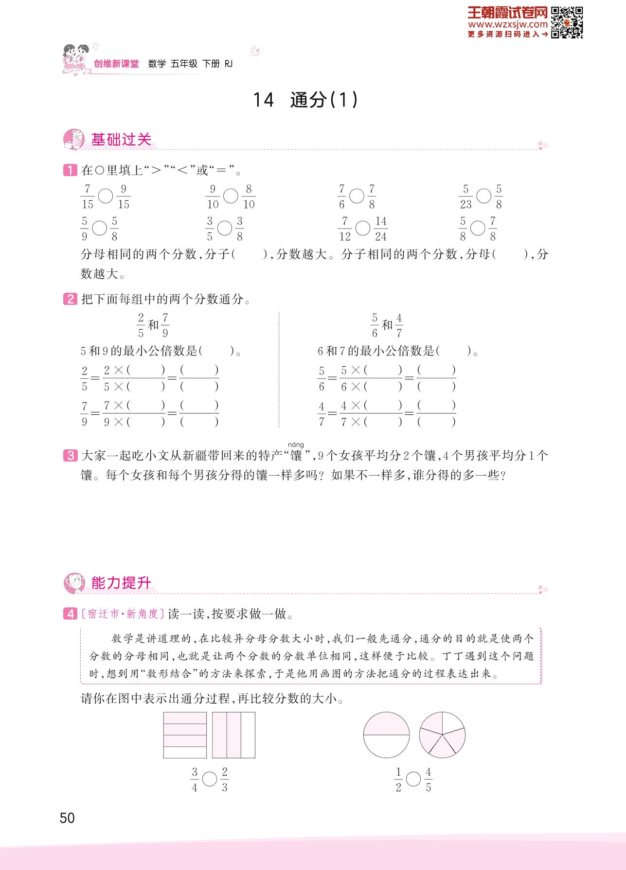 2023下册五年级数学人教版 四 分数的意义和性质——14 通分(1)