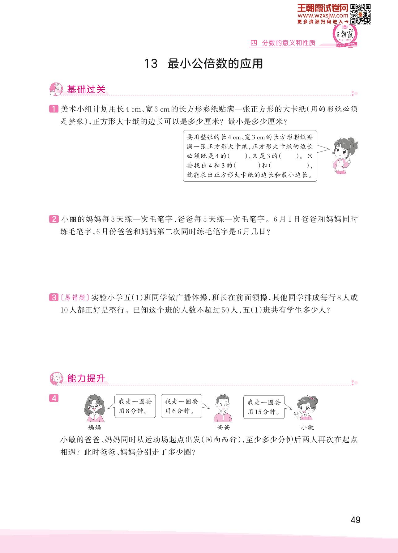 2023下册五年级数学人教版 四 分数的意义和性质——13 最小公倍数的应用