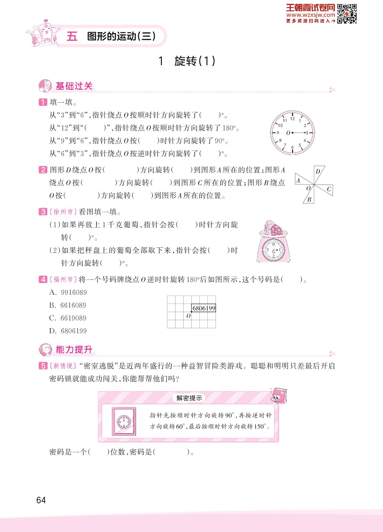 2023下册五年级数学人教版 五 图形的运动(三)——1 旋转(1)