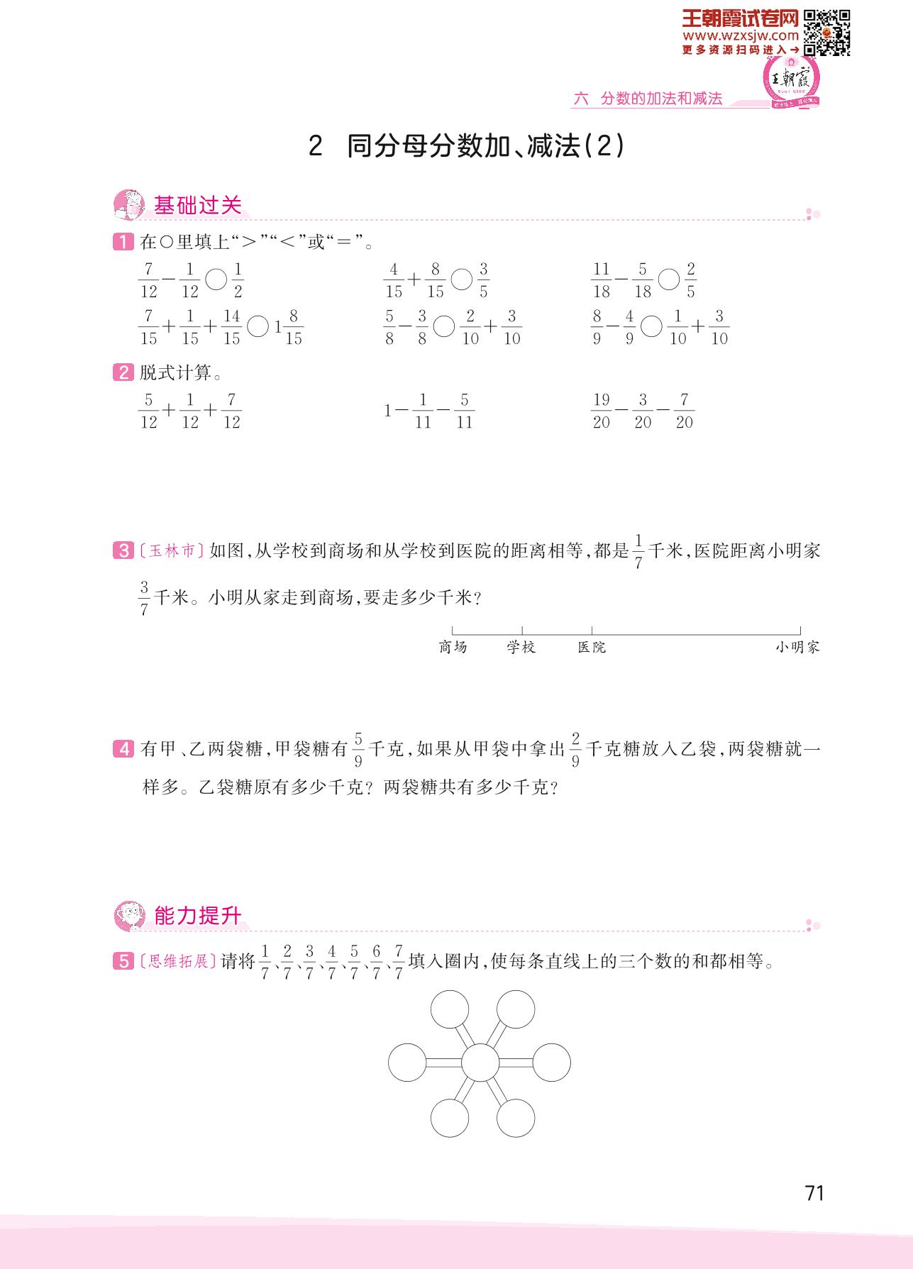 2023下册五年级数学人教版 六 分数的加法和减法——2 同分母分数加、减法(2)