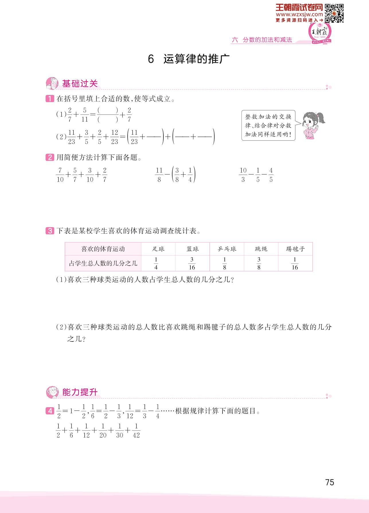 2023下册五年级数学人教版 六 分数的加法和减法——6 运算律的推广