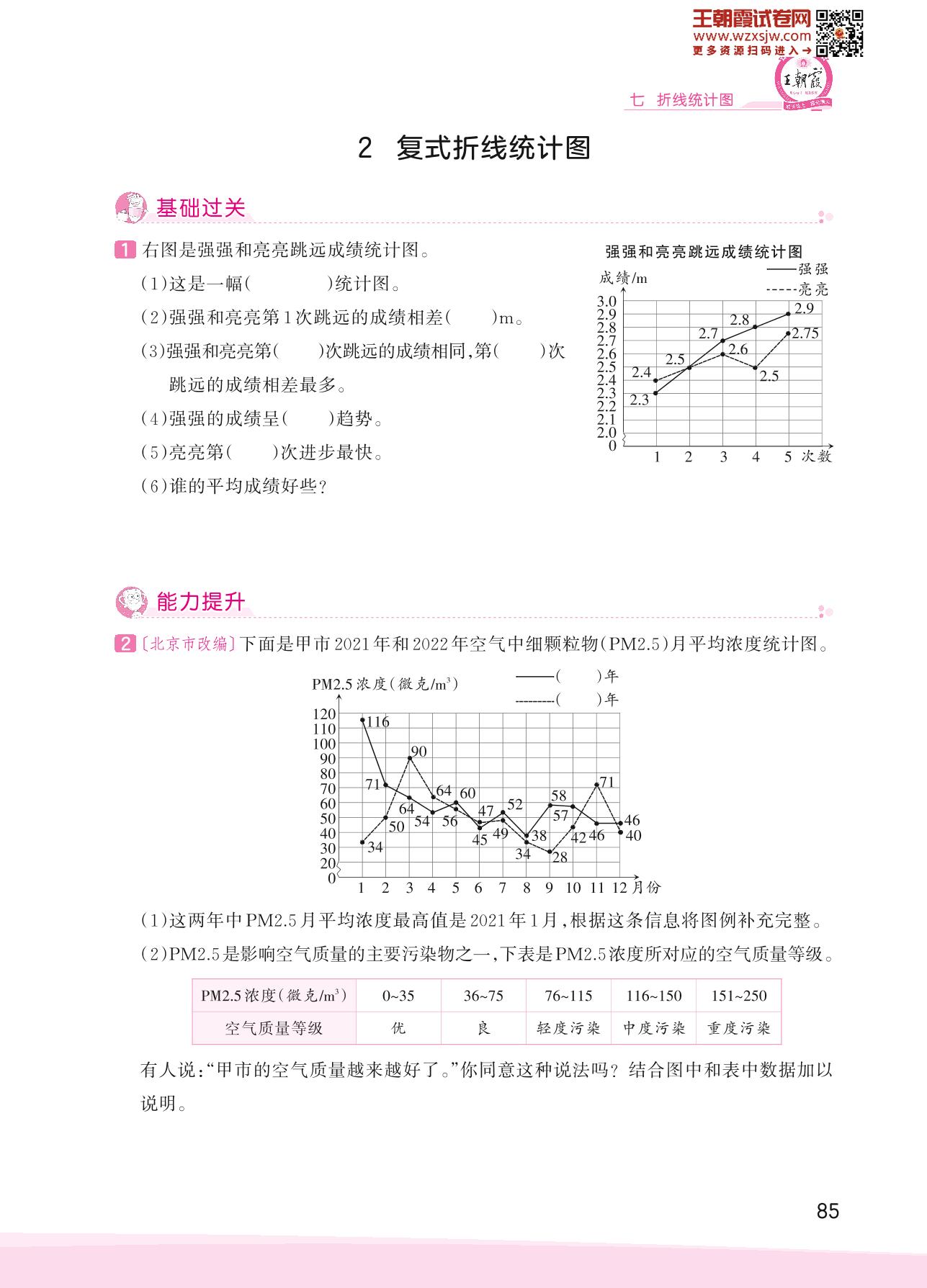 2023下册五年级数学人教版 七 折线统计图——2 复式折线统计图