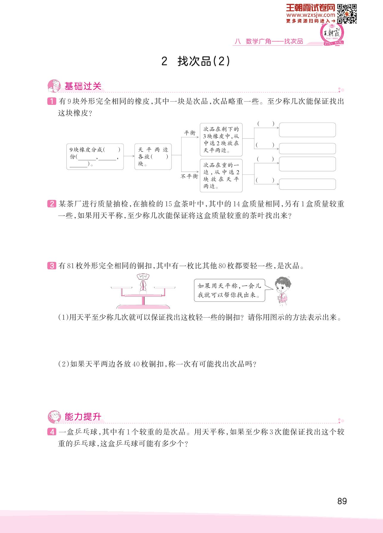 2023下册五年级数学人教版 八 数学广角 找次品——2 找次品(2)