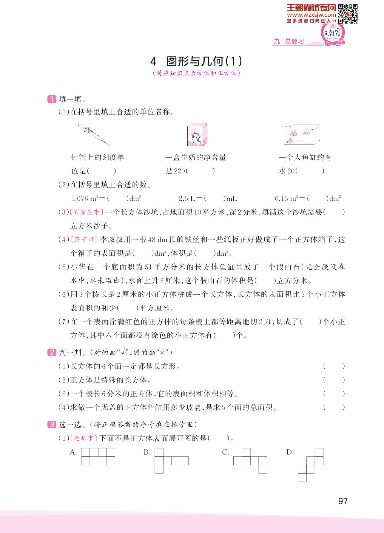 2023下册五年级数学人教版 九 总复习——4 图形与几何(1)