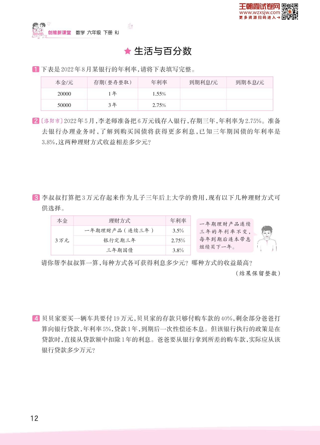 2023下册六年级数学人教版 二 百分数(二)——生活与百分数