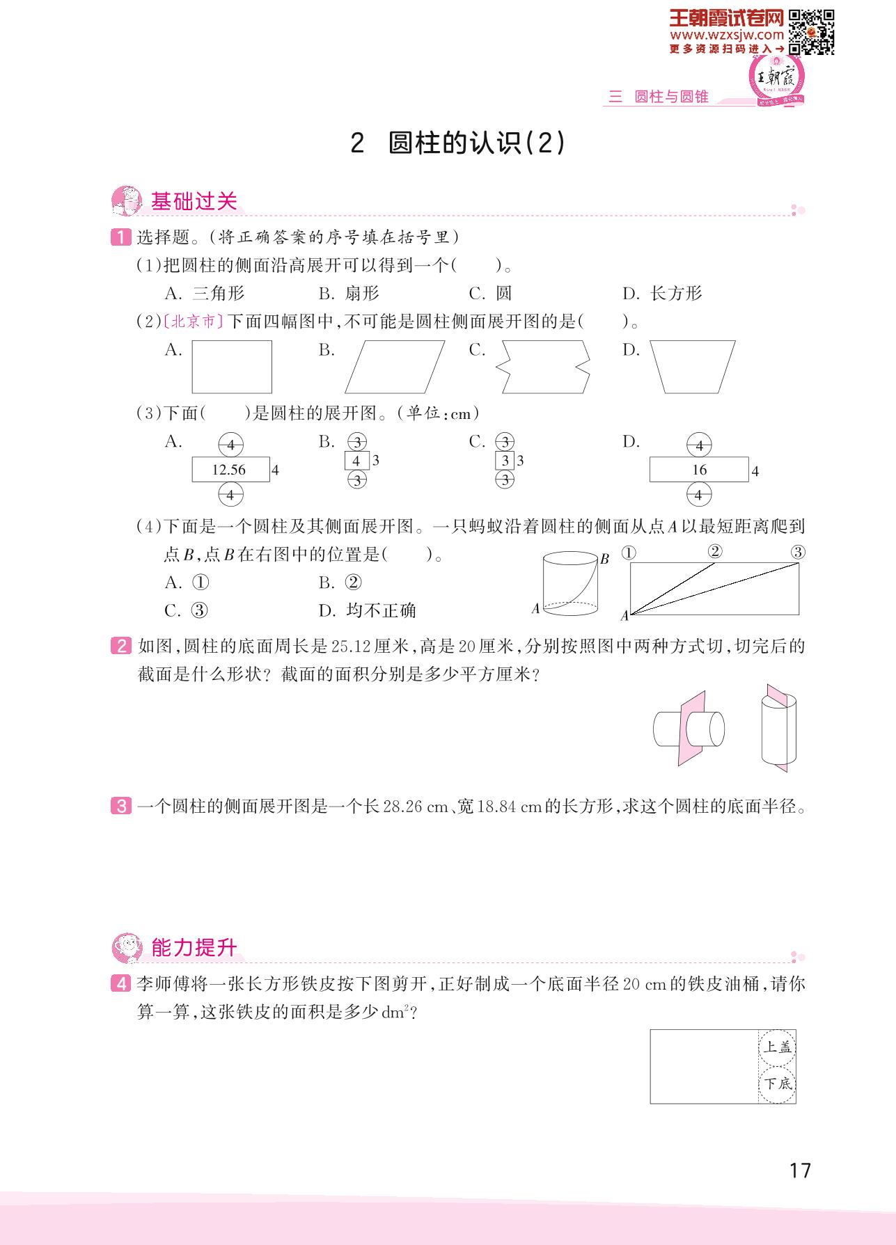 2023下册六年级数学人教版 三 圆柱与圆锥——2 圆柱的认识(2)