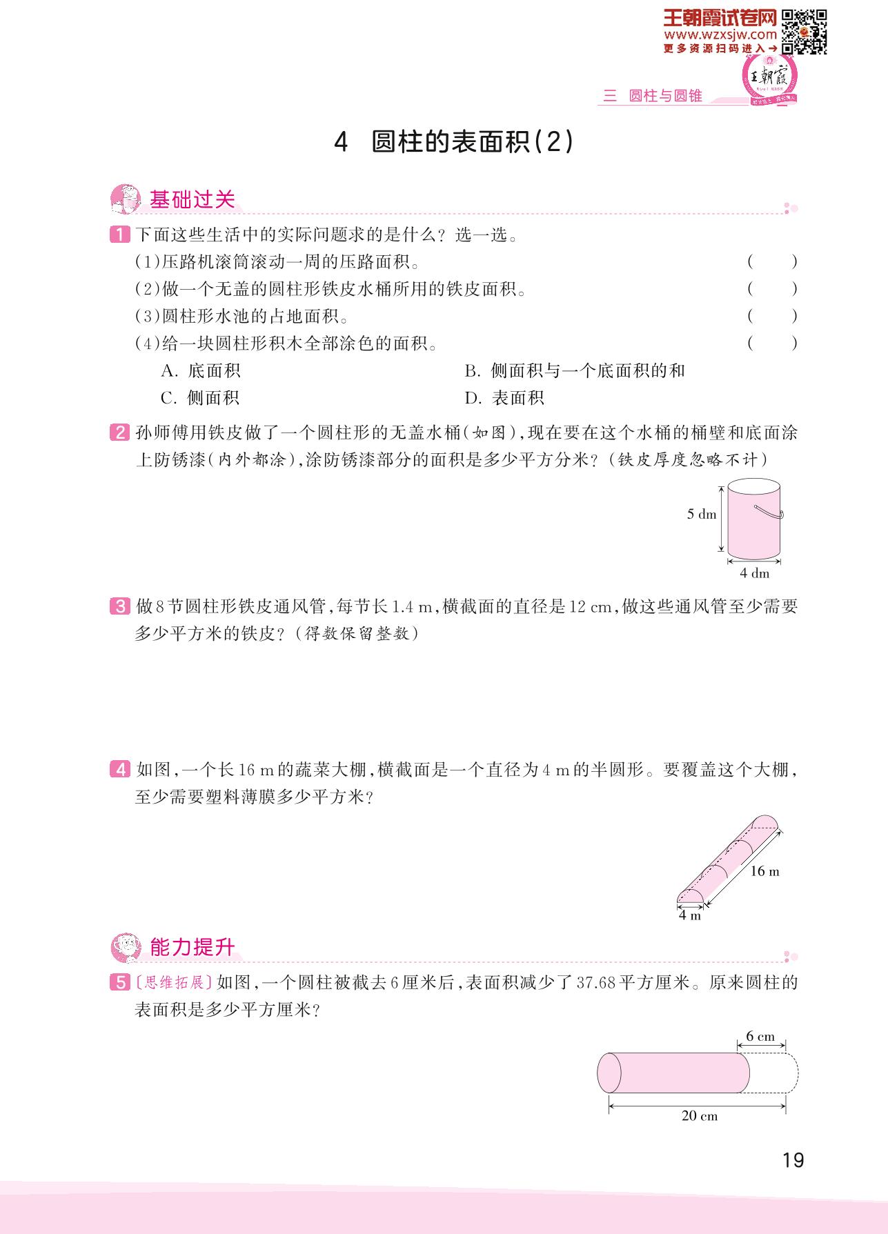 2023下册六年级数学人教版 三 圆柱与圆锥——4 圆柱的表面积(2)