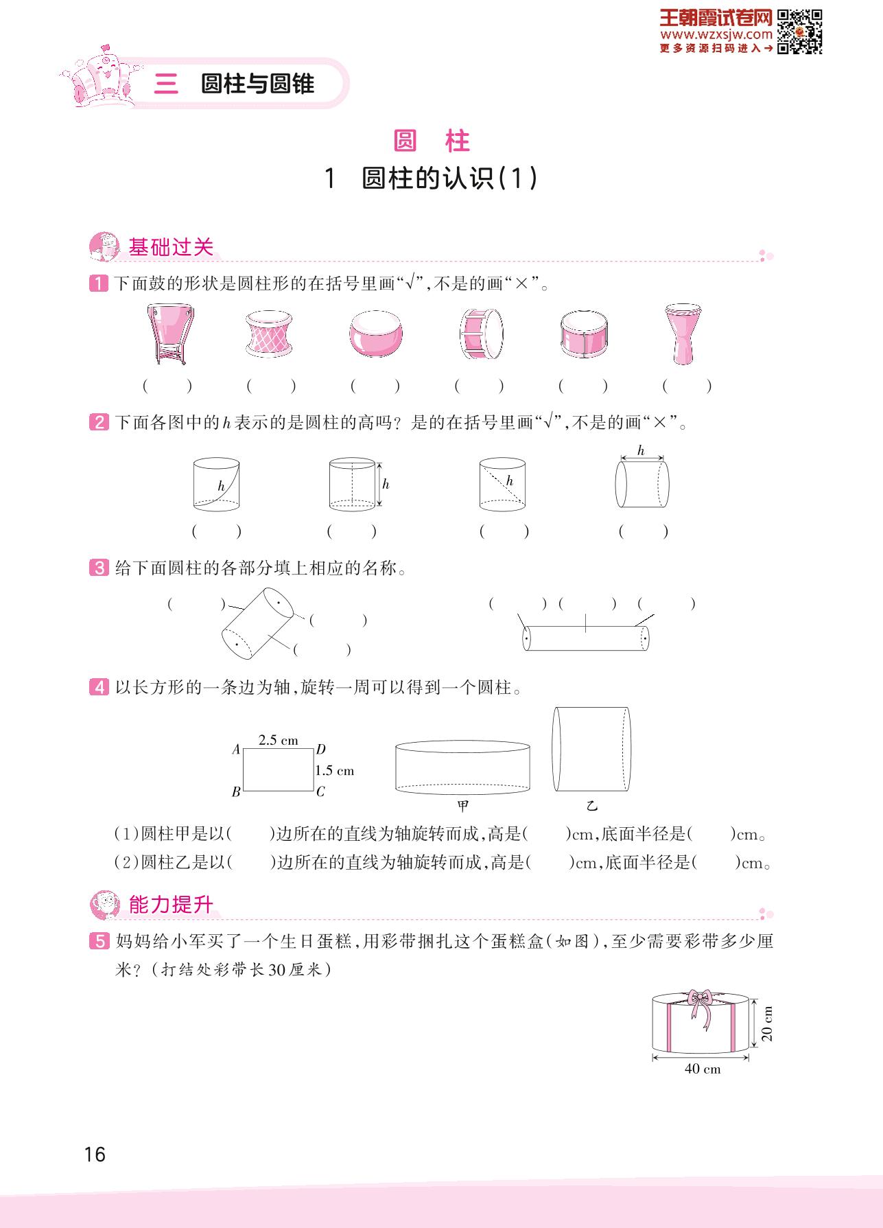 2023下册六年级数学人教版 三 圆柱与圆锥——1 圆柱的认识(1)