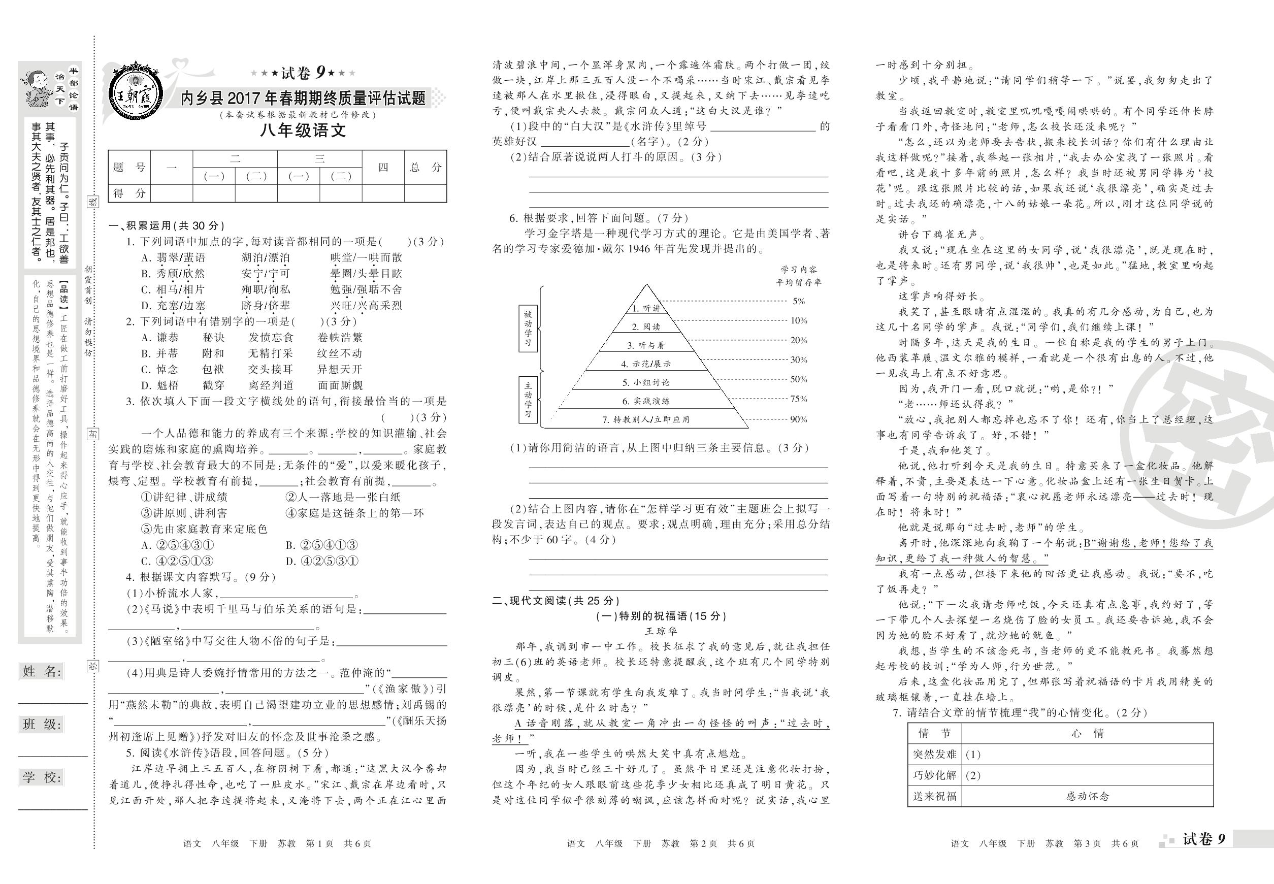2016-2017学年第二学期南阳市内乡县八年级语文试卷(苏教版)【9】