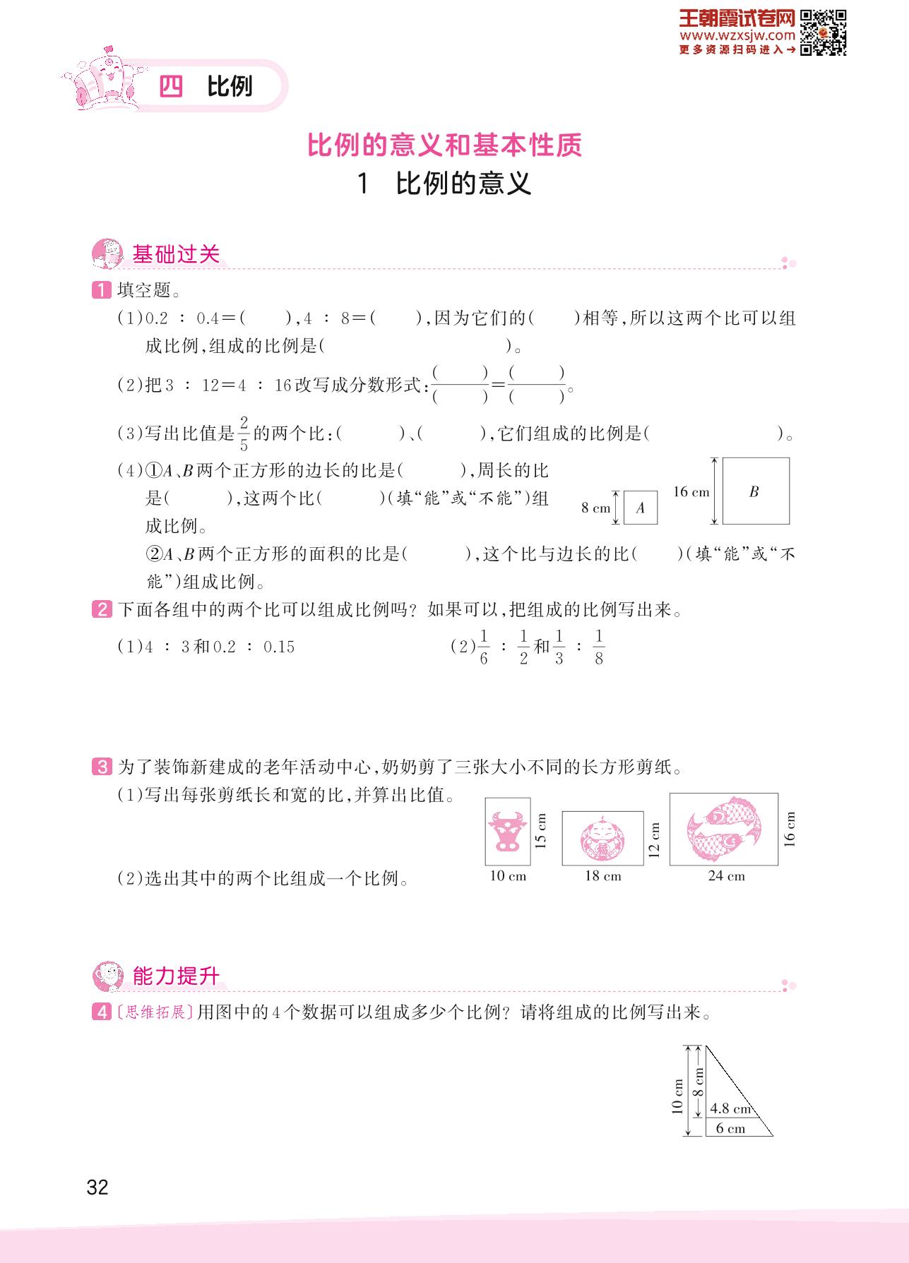 2023下册六年级数学人教版 四 比例——1 比例的意义