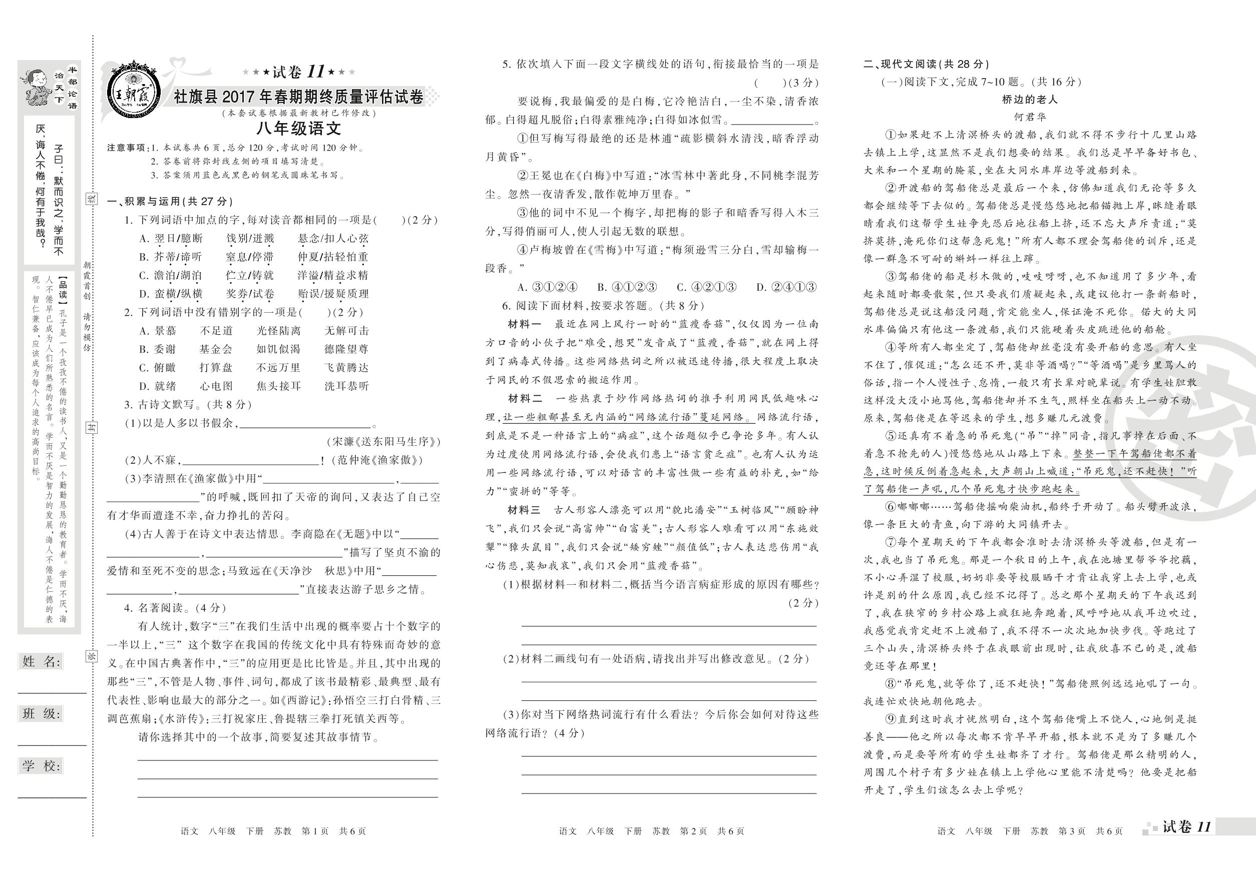 2016-2017学年第二学期南阳市社旗县八年级语文试卷(苏教版)【11】