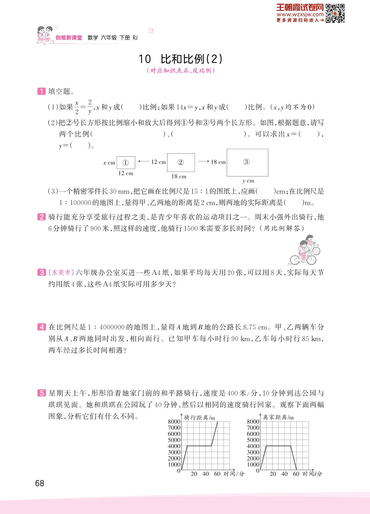 2023下册六年级数学人教版 六 整理和复习——10 比和比例(2)