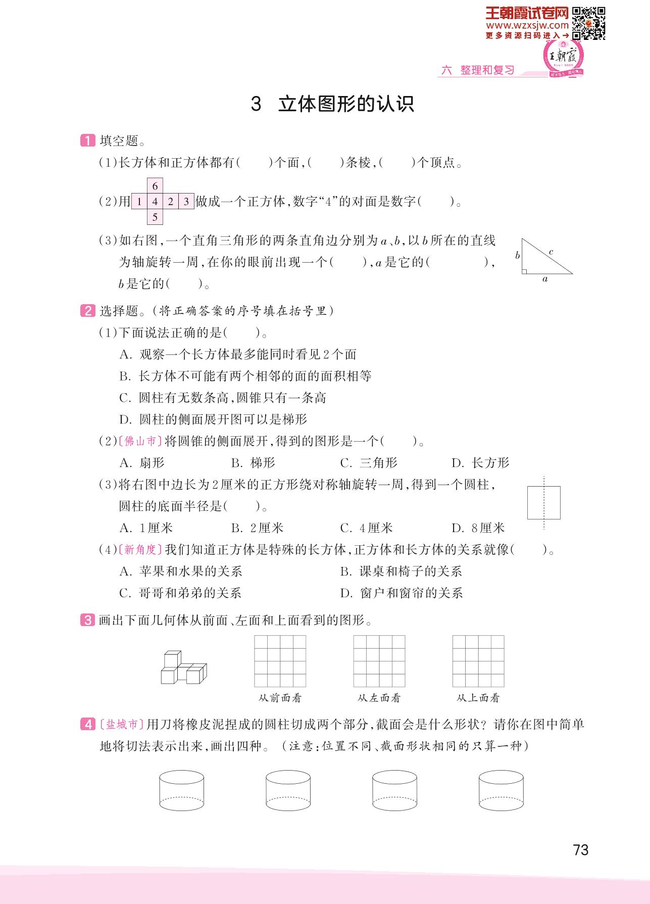 2023下册六年级数学人教版 六 整理和复习——3 立体图形的认识