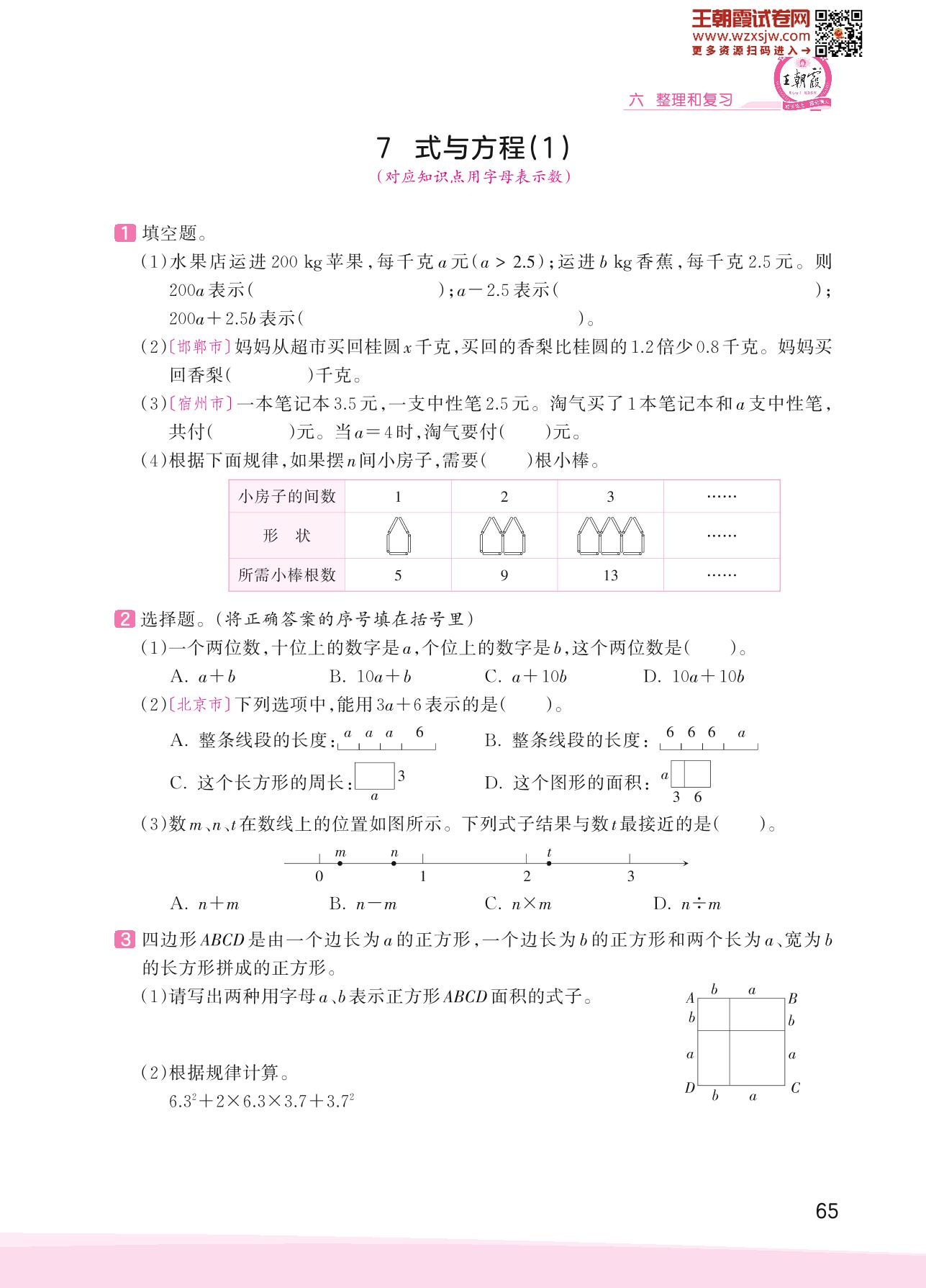 2023下册六年级数学人教版 六 整理和复习——7 式与方程(1)
