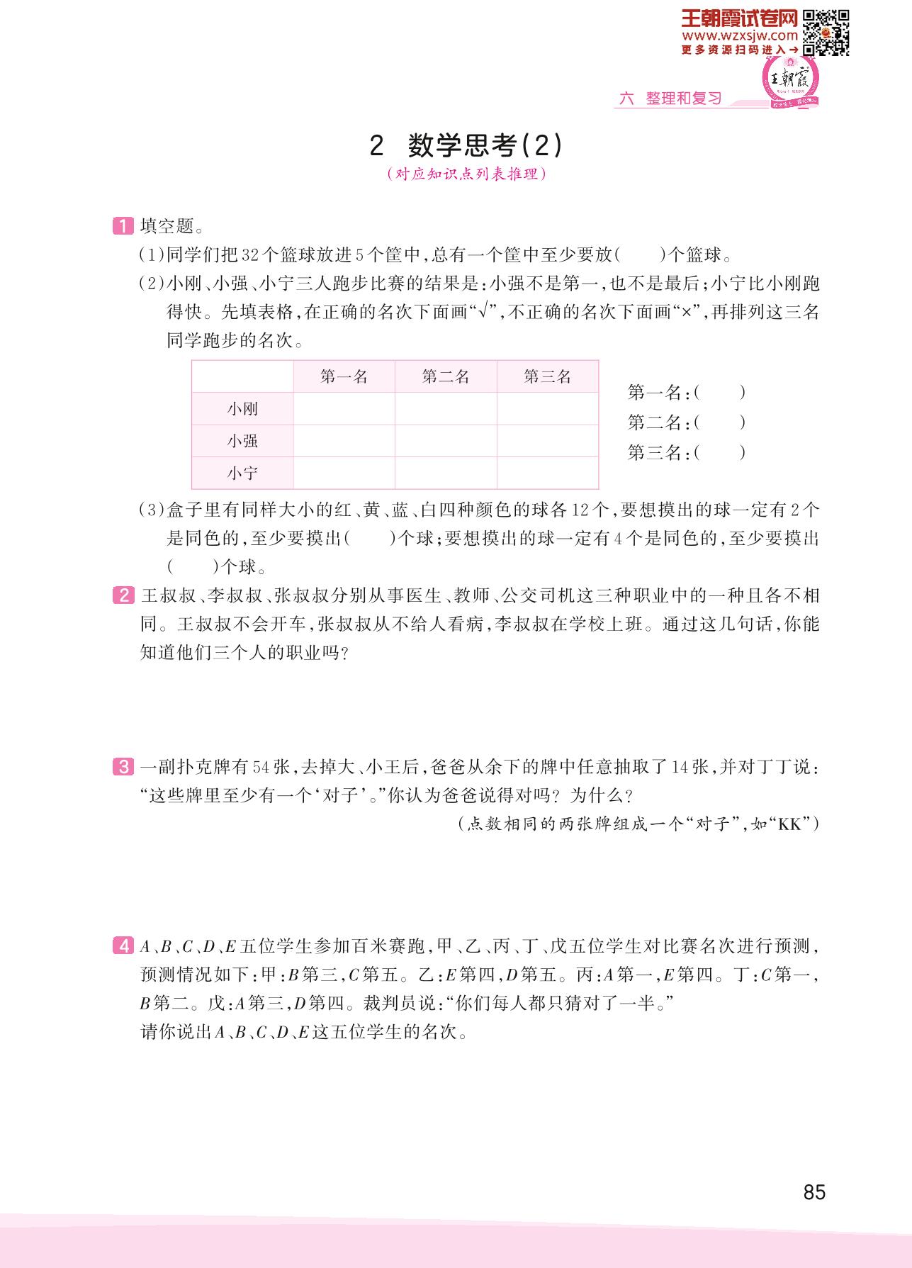 2023下册六年级数学人教版 六 整理和复习——2 数学思考(2)