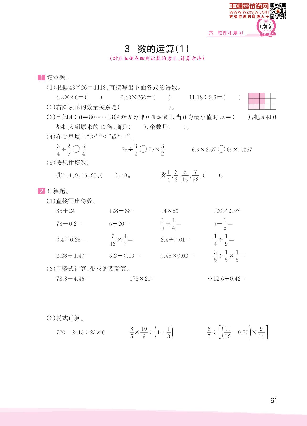 2023下册六年级数学人教版 六 整理和复习——3 数的运算(1)