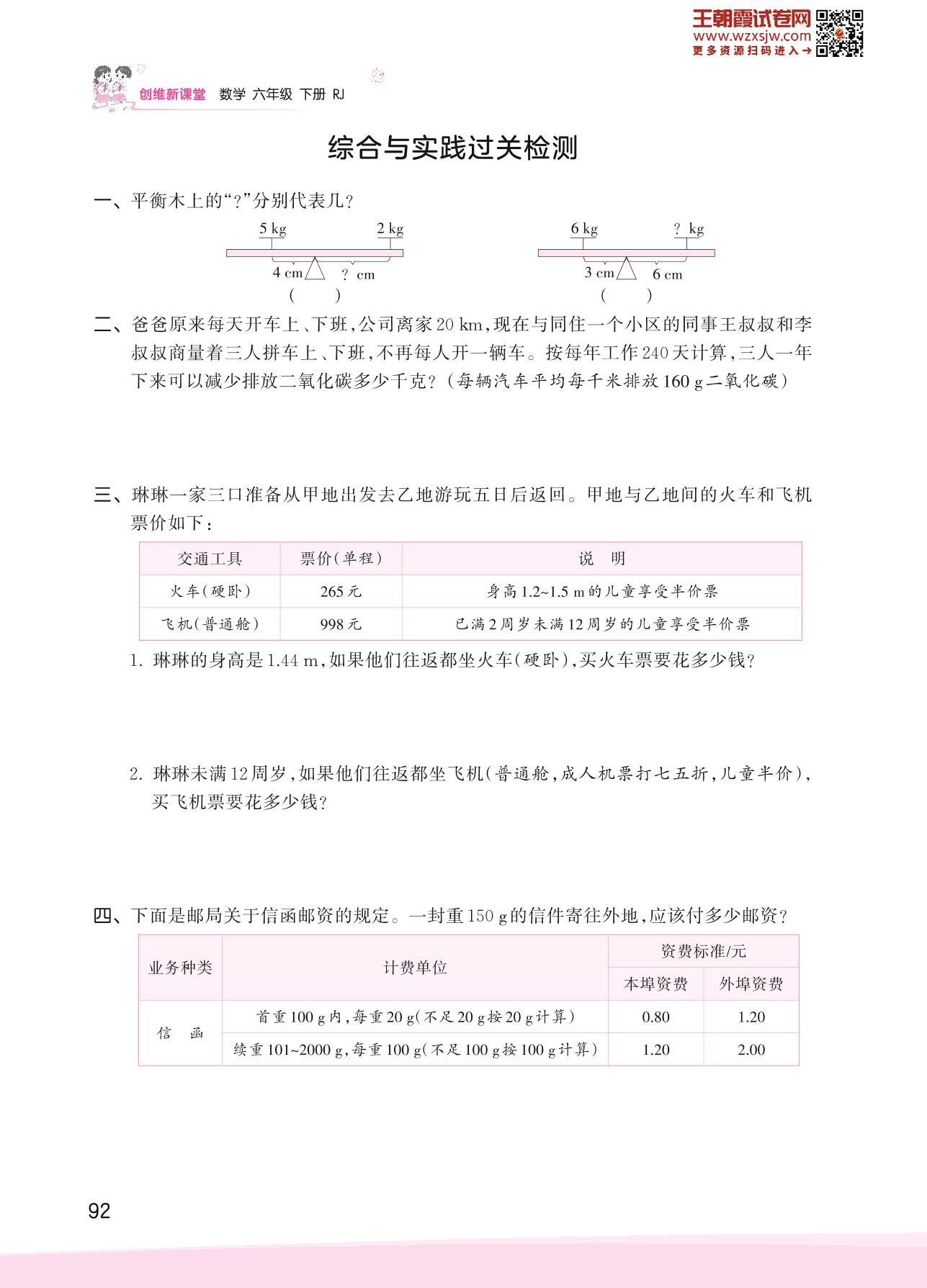 2023下册六年级数学人教版 六 整理和复习——综合与实践过关检测