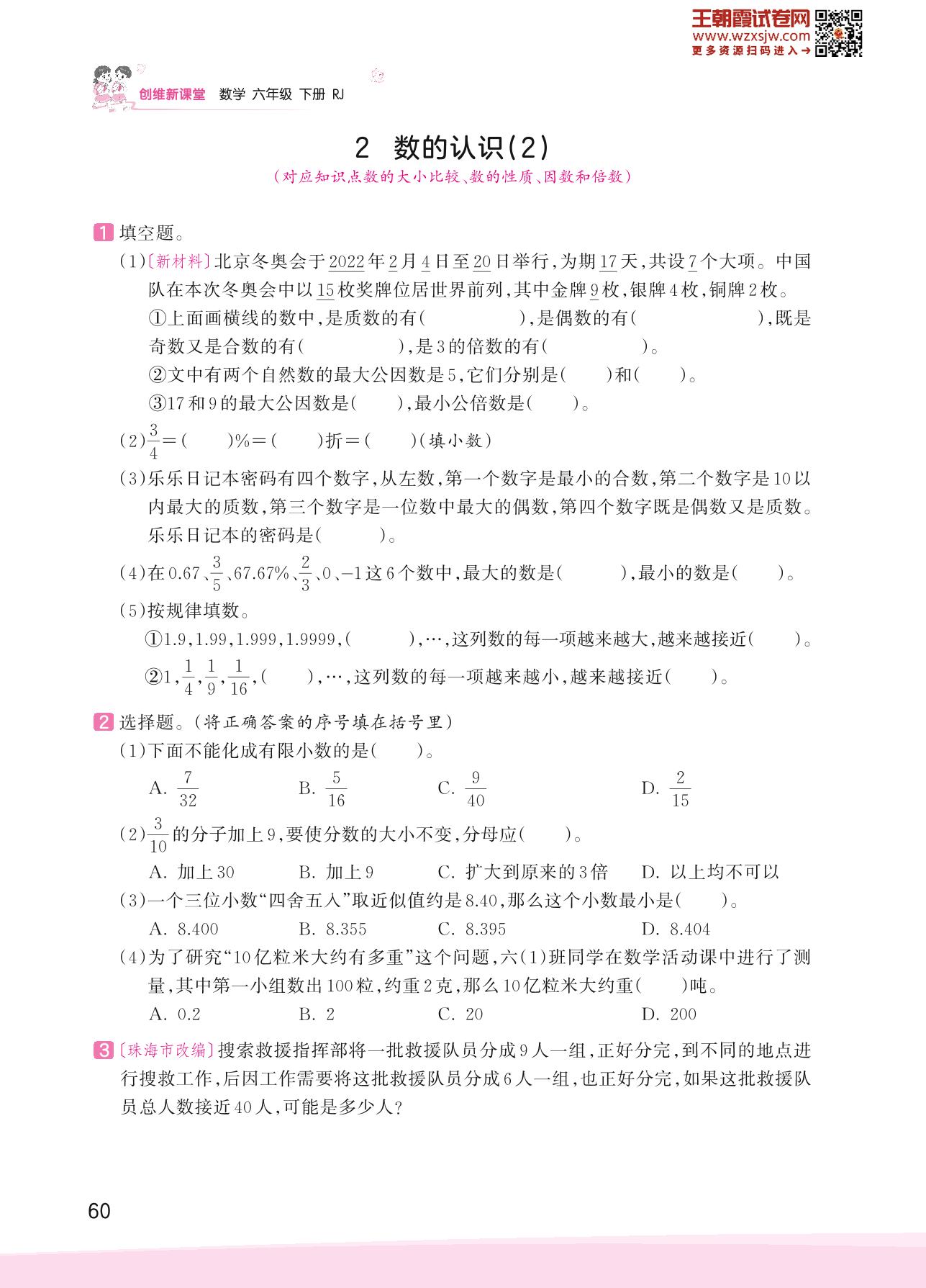 2023下册六年级数学人教版 六 整理和复习——2 数的认识(2)