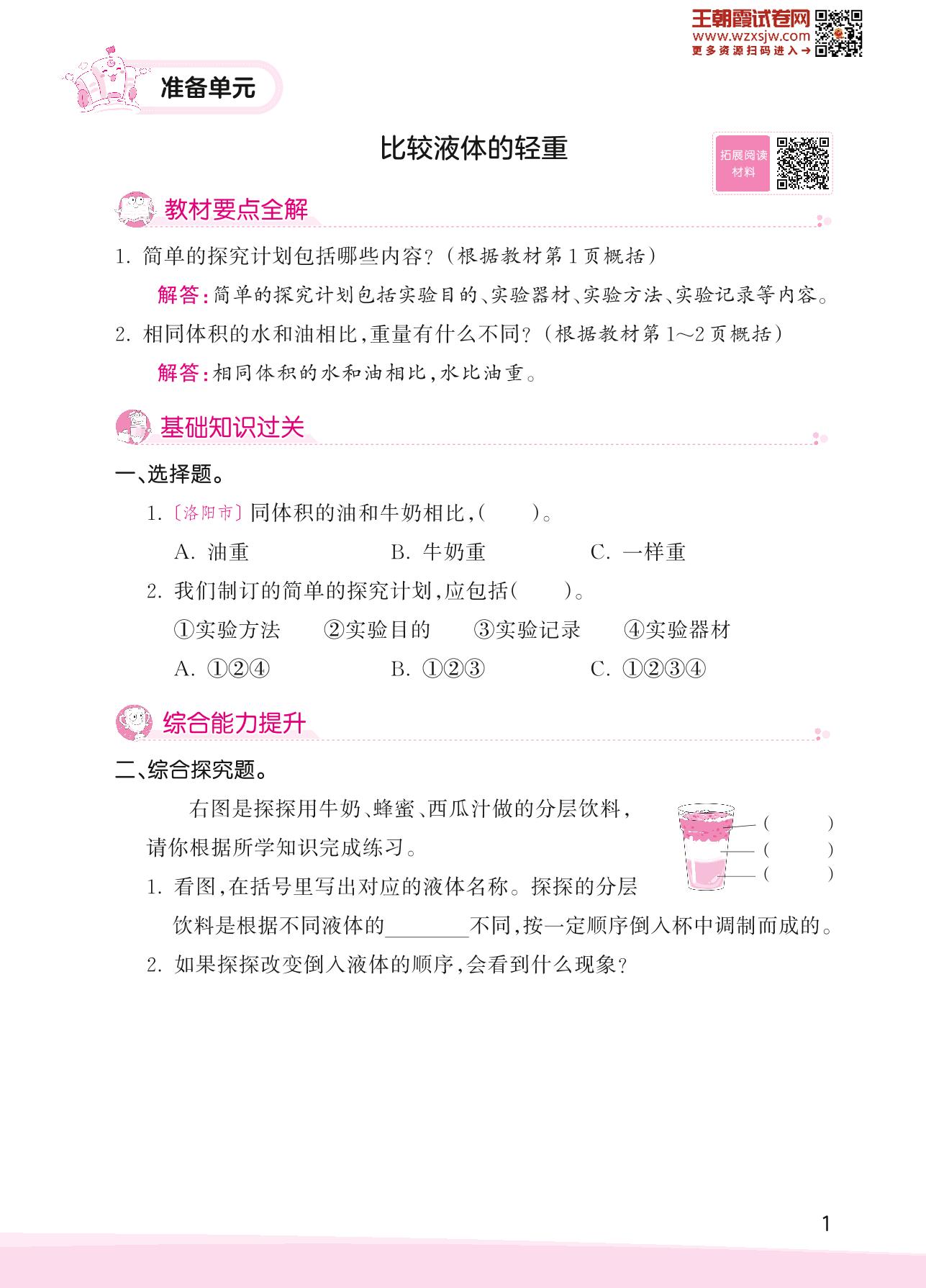 2023下册三年级科学大象版 准备单元——比较液体的轻重