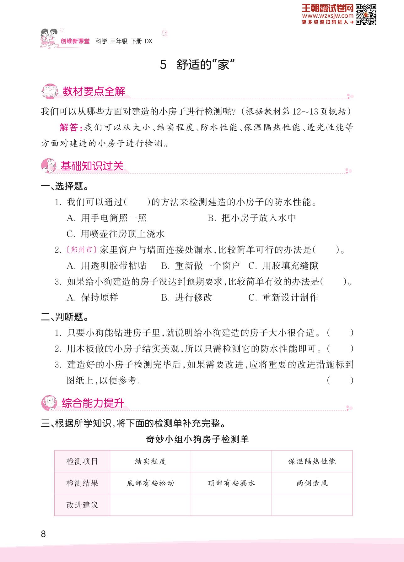 2023下册三年级科学大象版 第一单元 小小建筑师——5 舒适的“家”