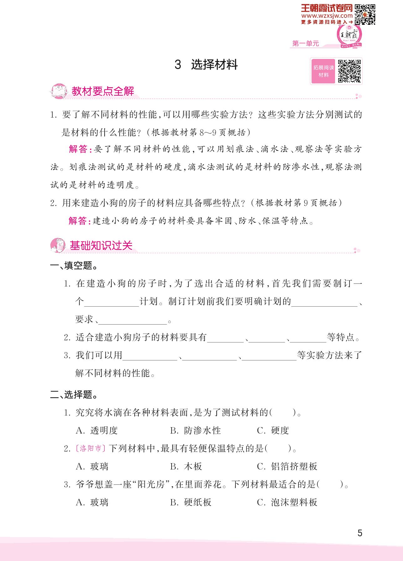 2023下册三年级科学大象版 第一单元 小小建筑师——3 选择材料