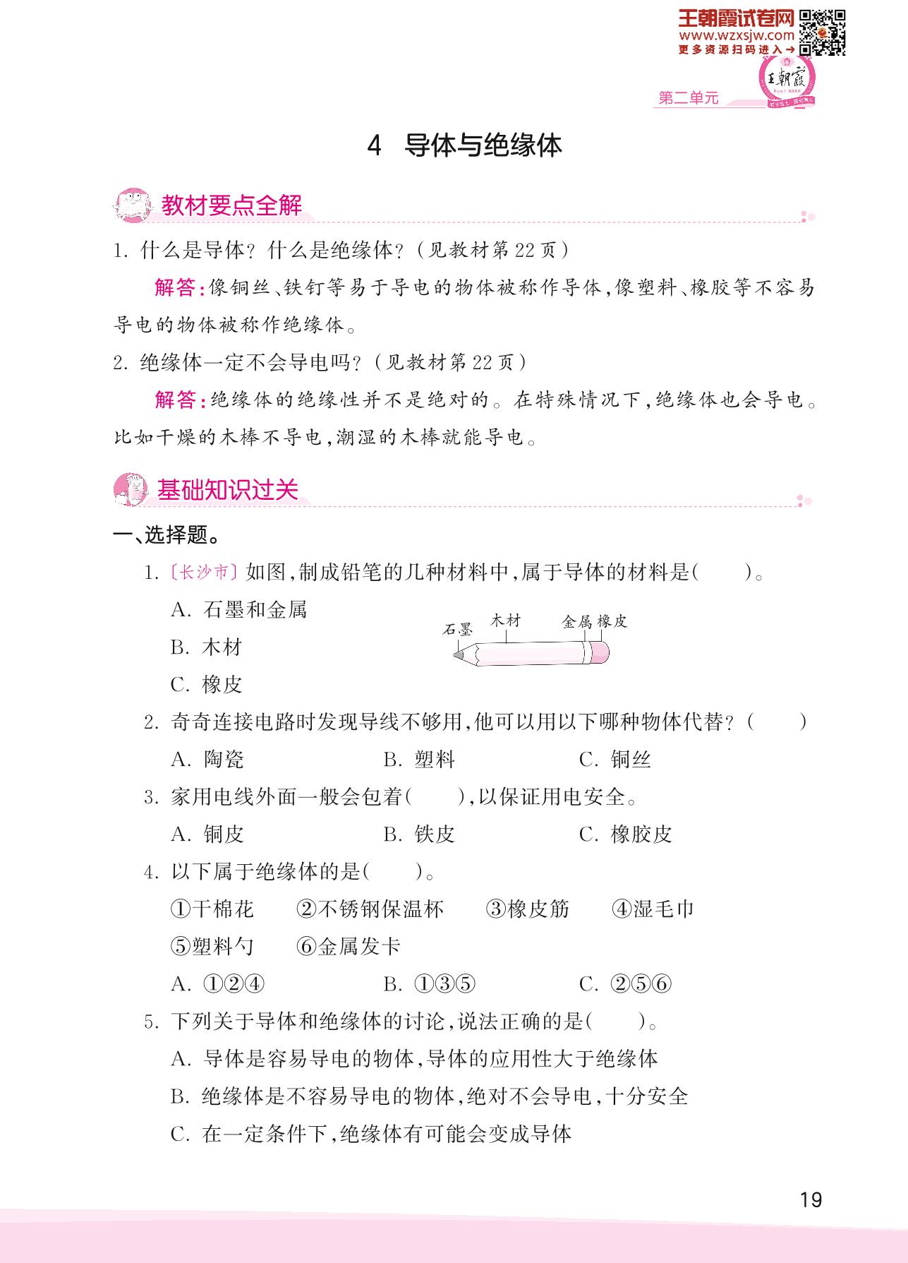 2023下册三年级科学大象版 第二单元 电与我们的生活——4 导体与绝缘体