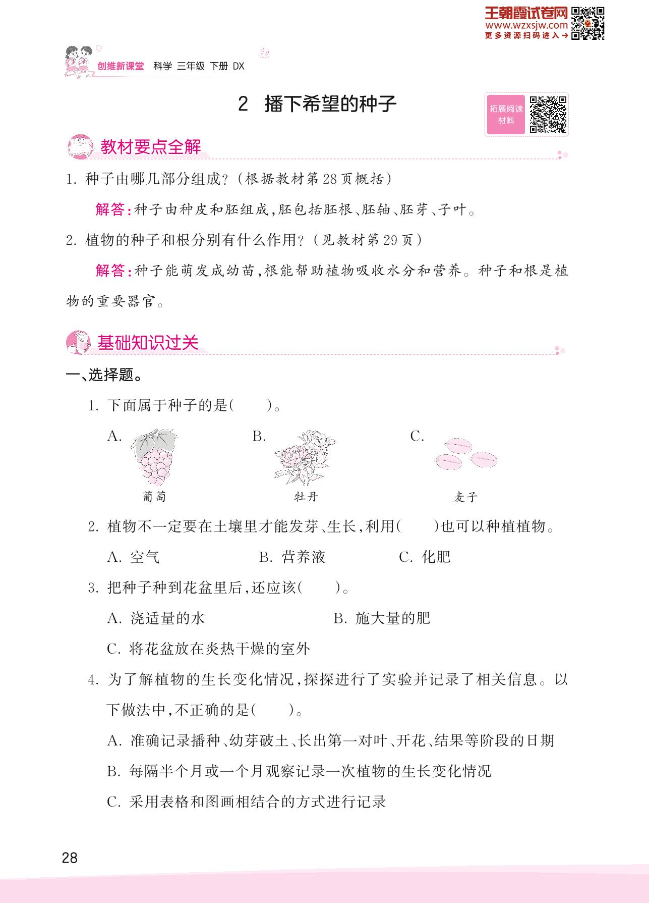 2023下册三年级科学大象版 第三单元 植物的一生——2 播下希望的种子