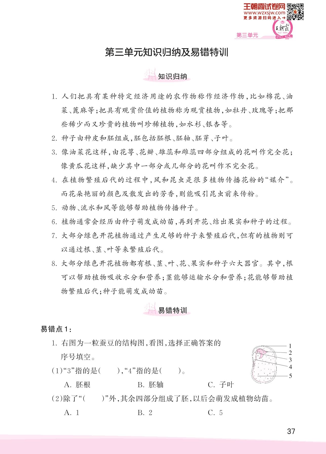 2023下册三年级科学大象版 第三单元知识归纳及易错特训