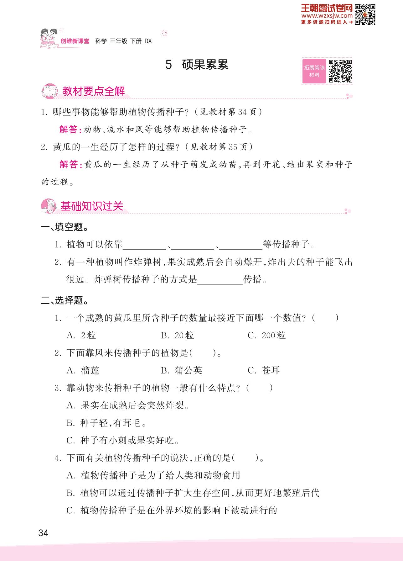 2023下册三年级科学大象版 第三单元 植物的一生——5 硕果累累