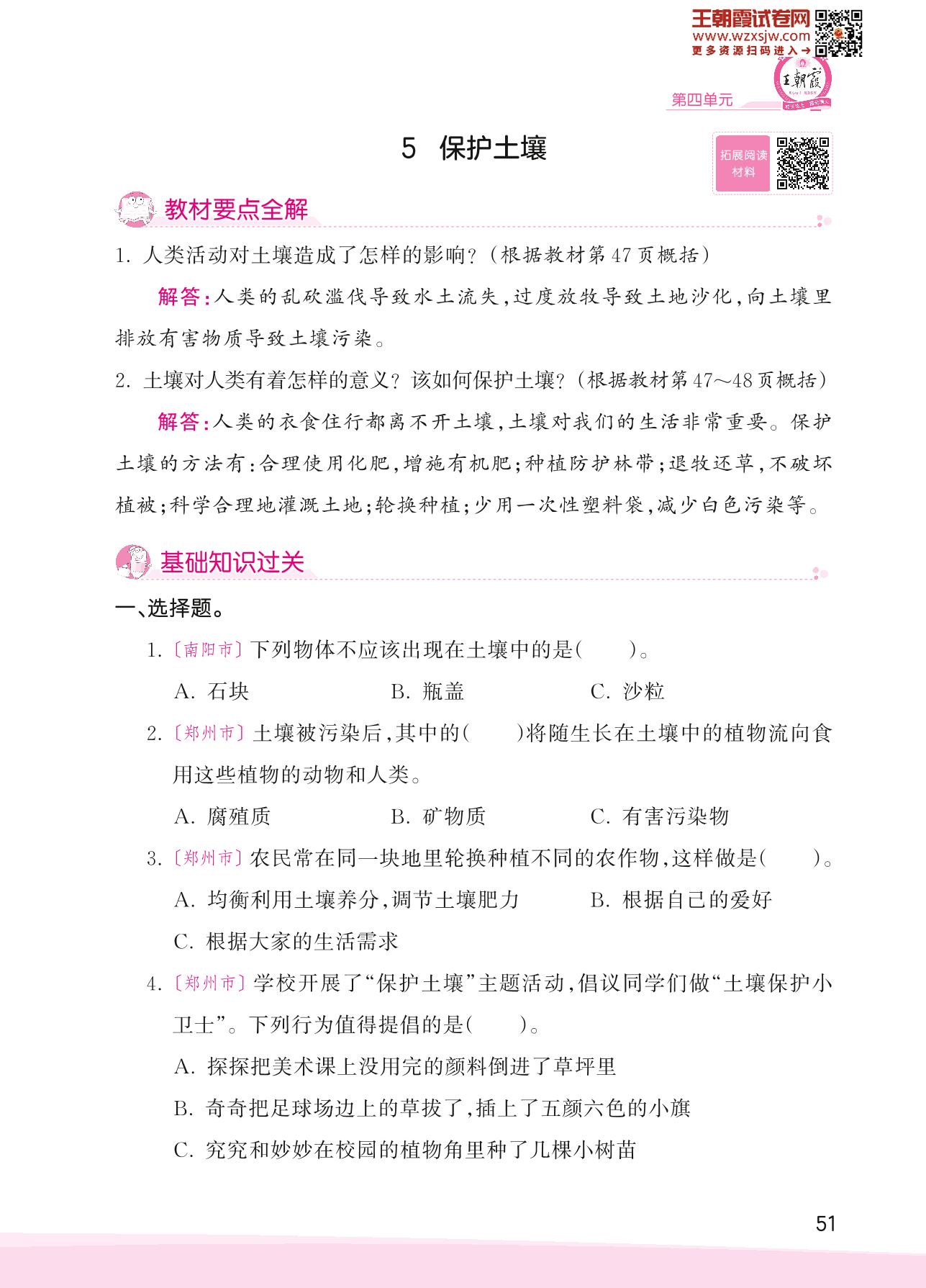 2023下册三年级科学大象版 第四单元 土壤,生命的家园——5 保护土壤