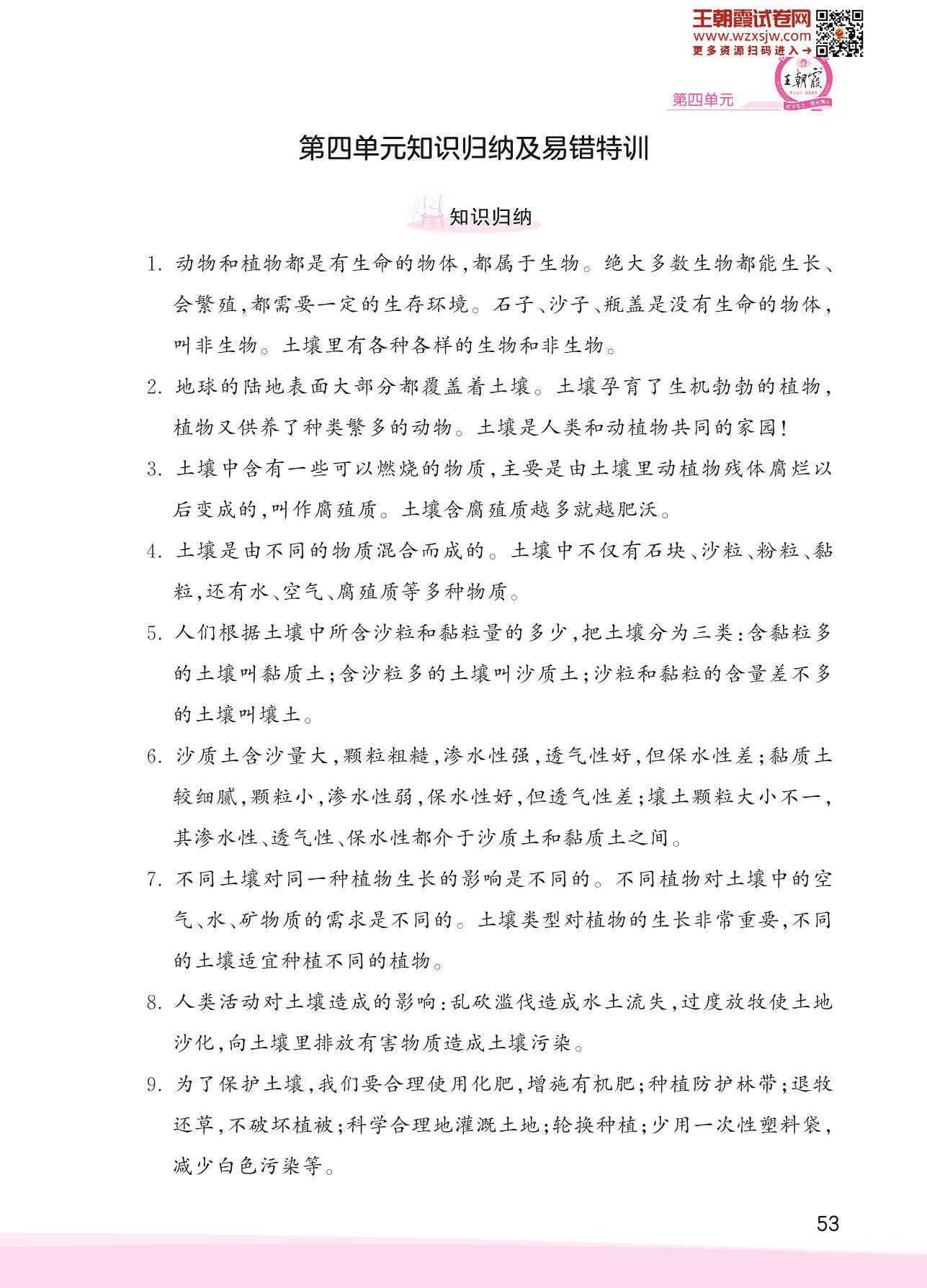 2023下册三年级科学大象版 第四单元知识归纳及易错特训