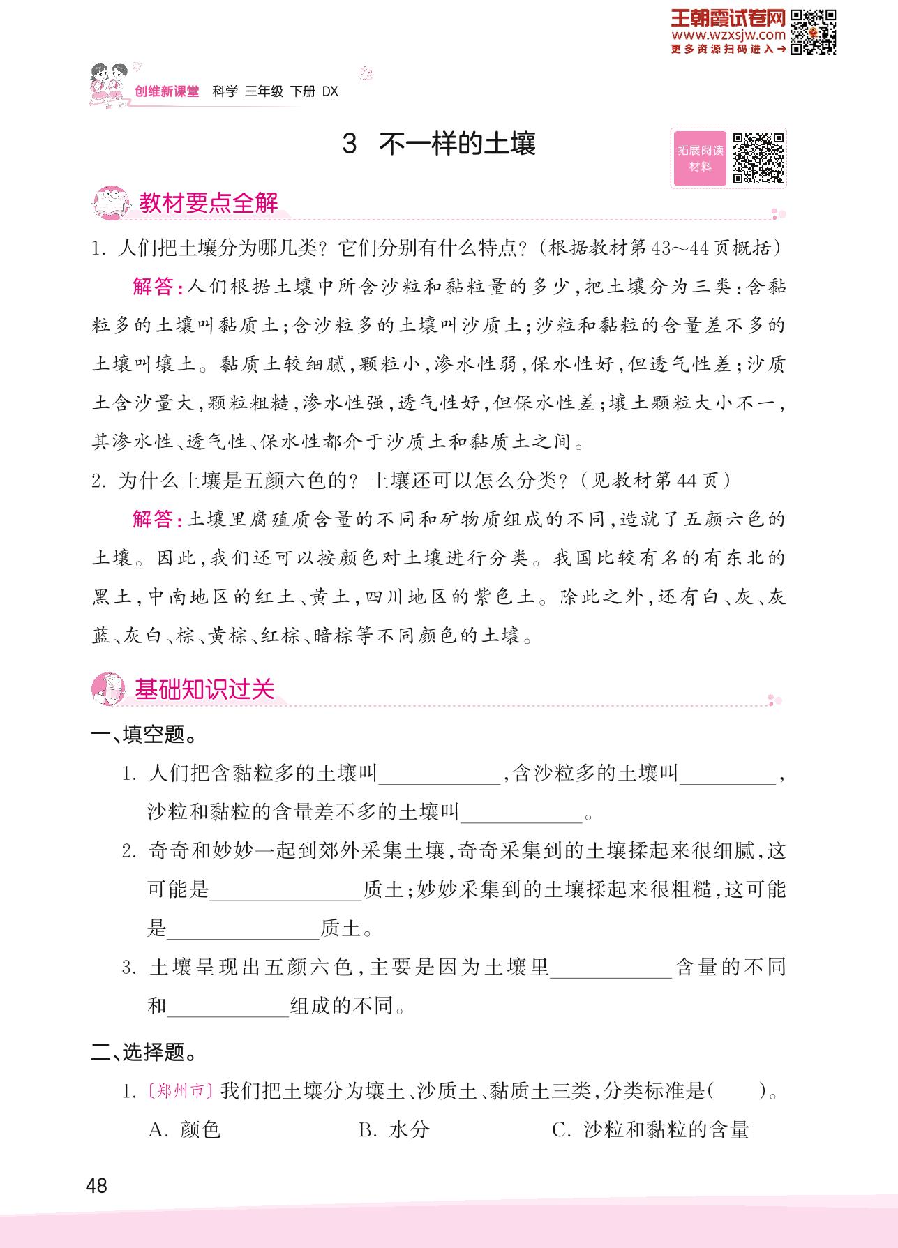 2023下册三年级科学大象版 第四单元 土壤,生命的家园——3 不一样的土壤