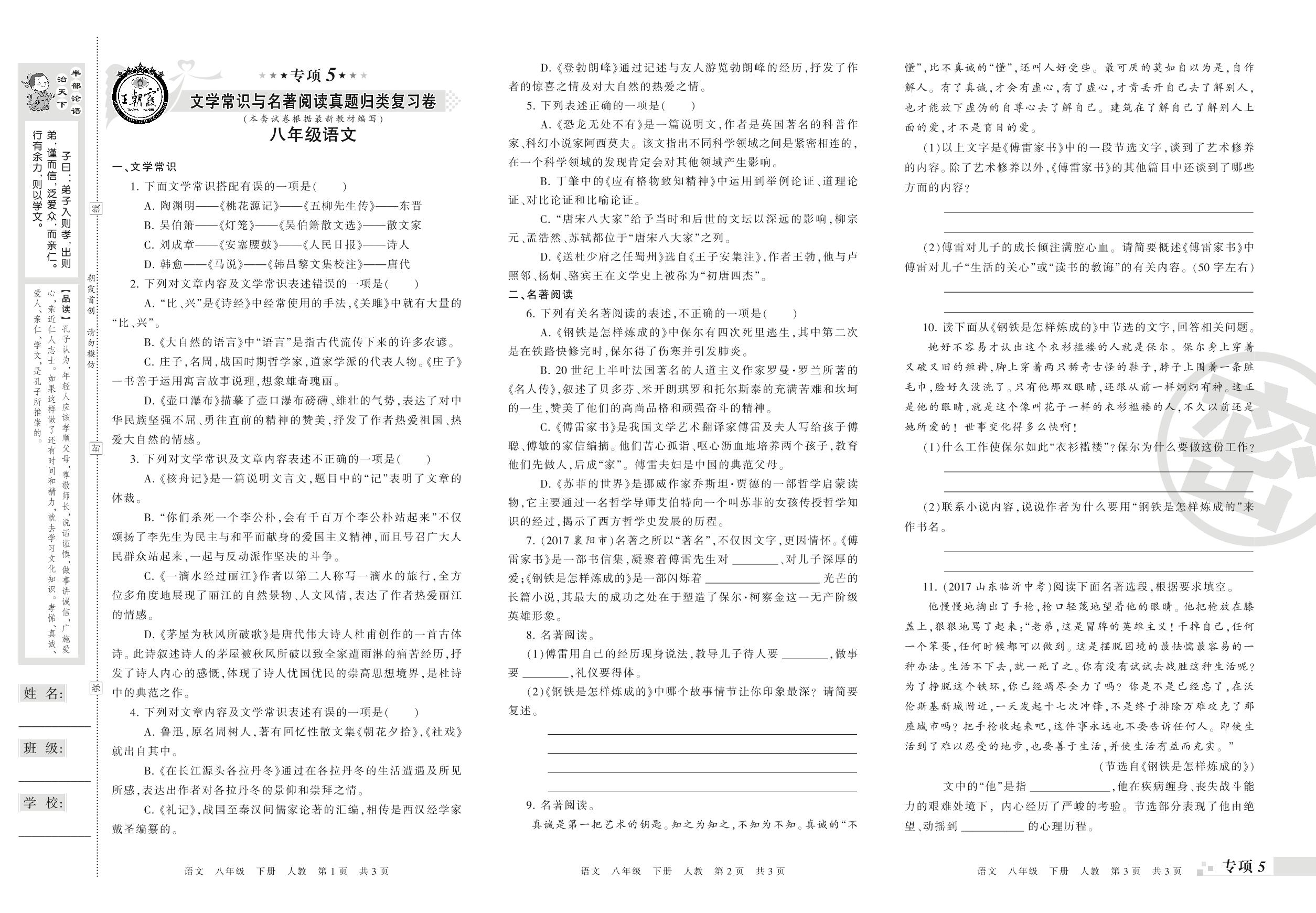 王朝霞期末专项卷——文学常识与名著阅读真题归类复习卷八年级下册语文(人教版)_R210802184548【0】