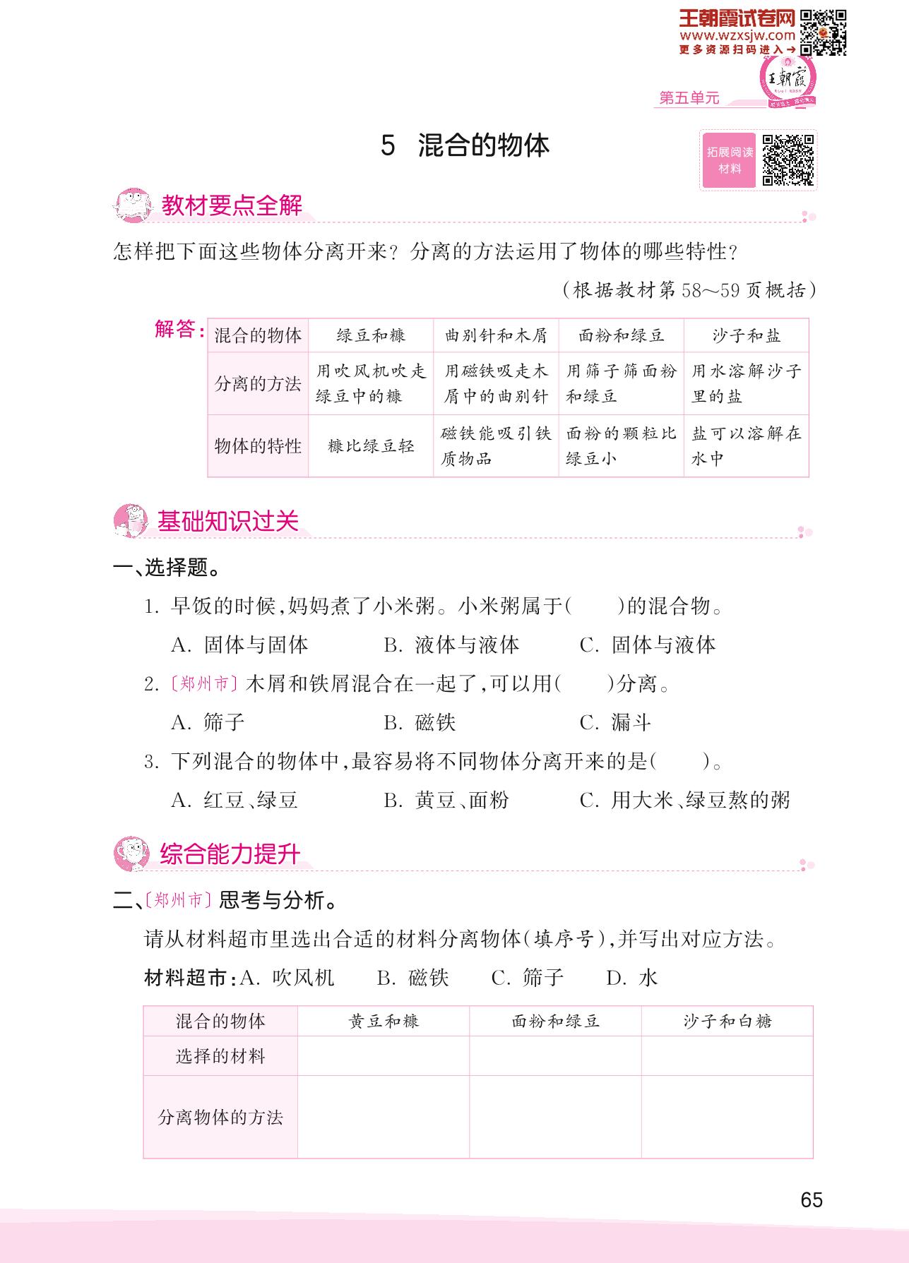 2023下册三年级科学大象版 第五单元 不一样的物体——5 混合的物体