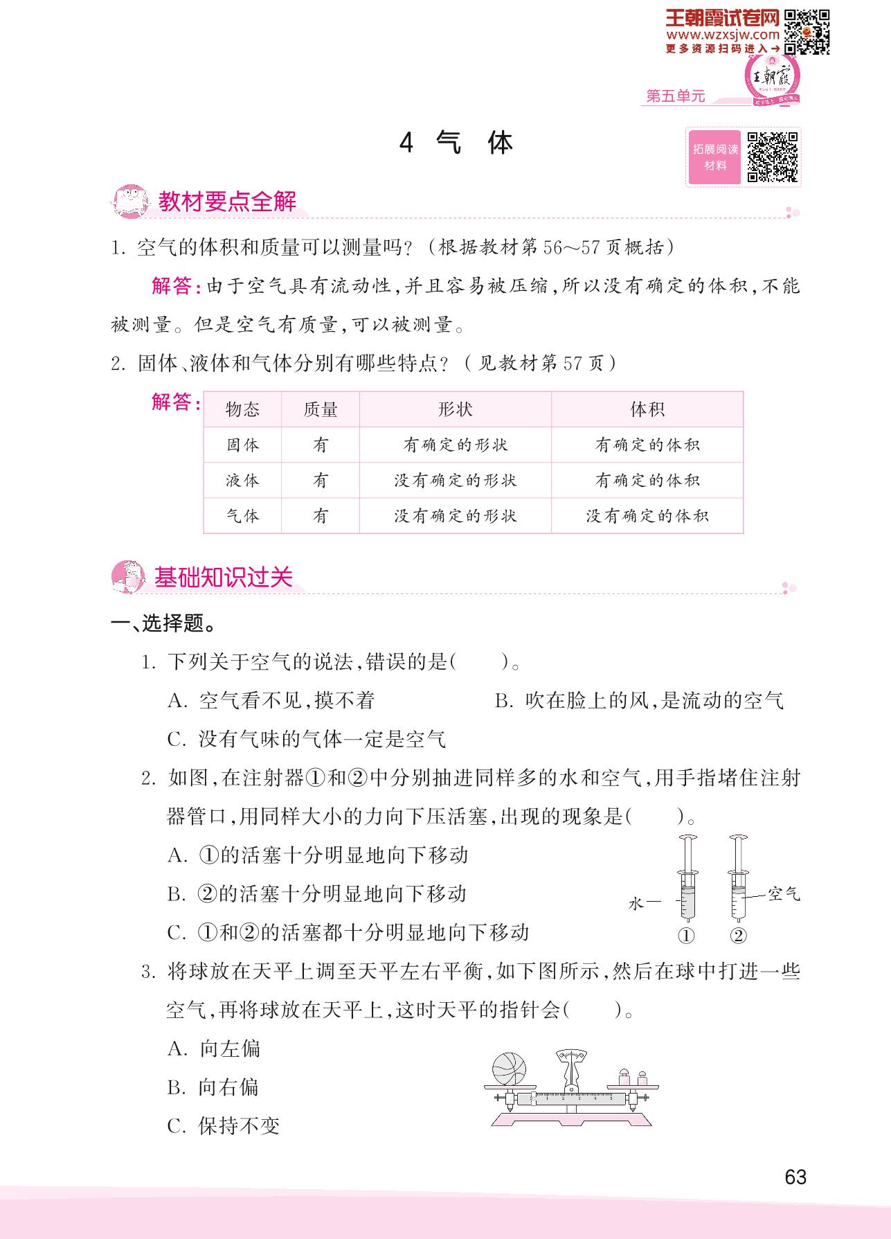 2023下册三年级科学大象版 第五单元 不一样的物体——4 气体