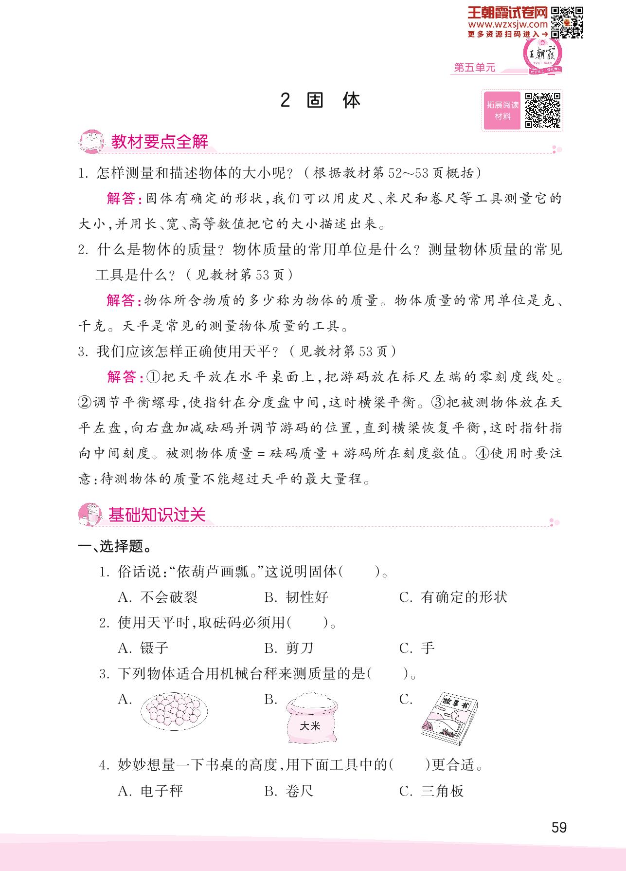 2023下册三年级科学大象版 第五单元 不一样的物体——2 固体