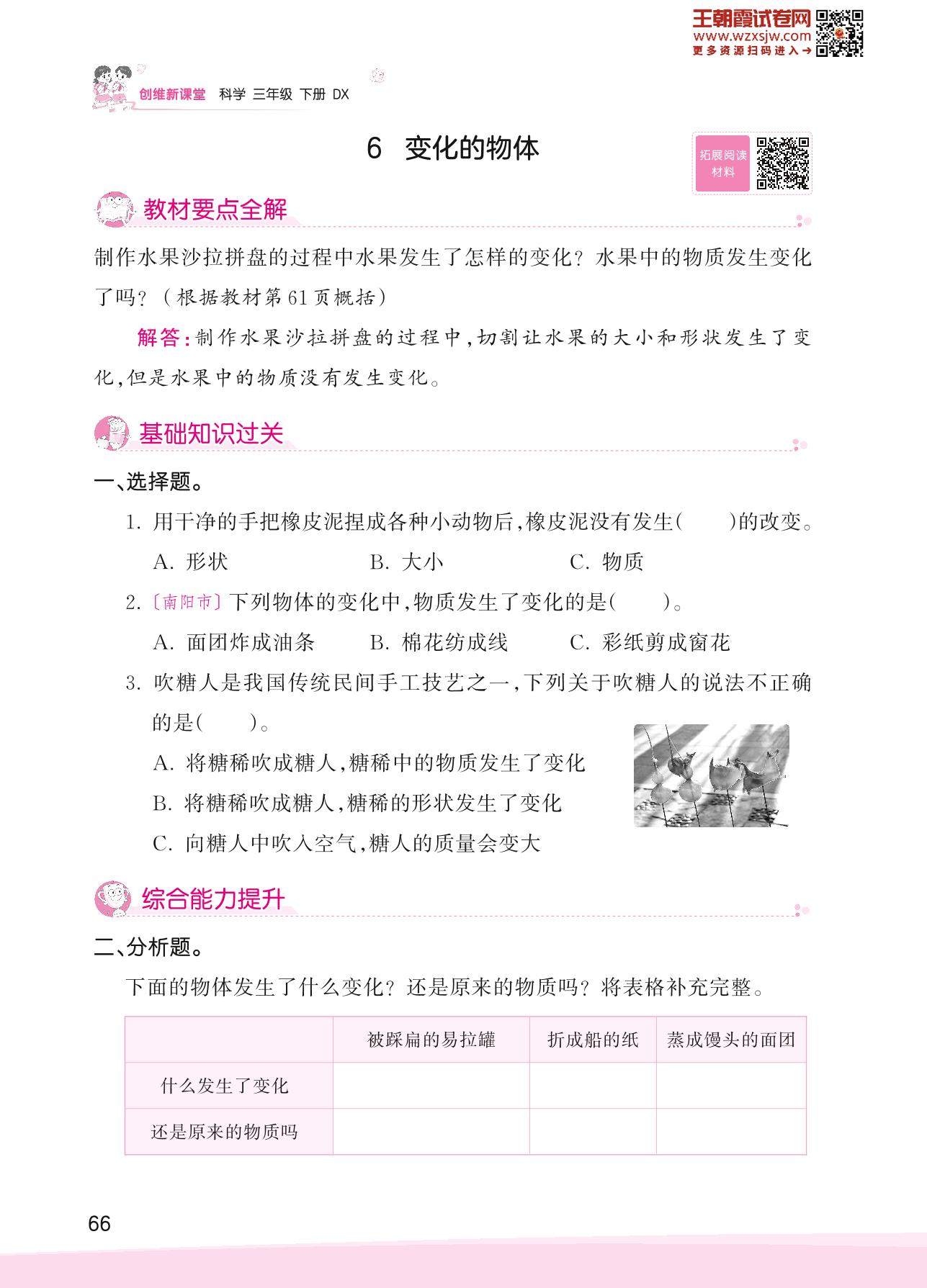 2023下册三年级科学大象版 第五单元 不一样的物体——6 变化的物体