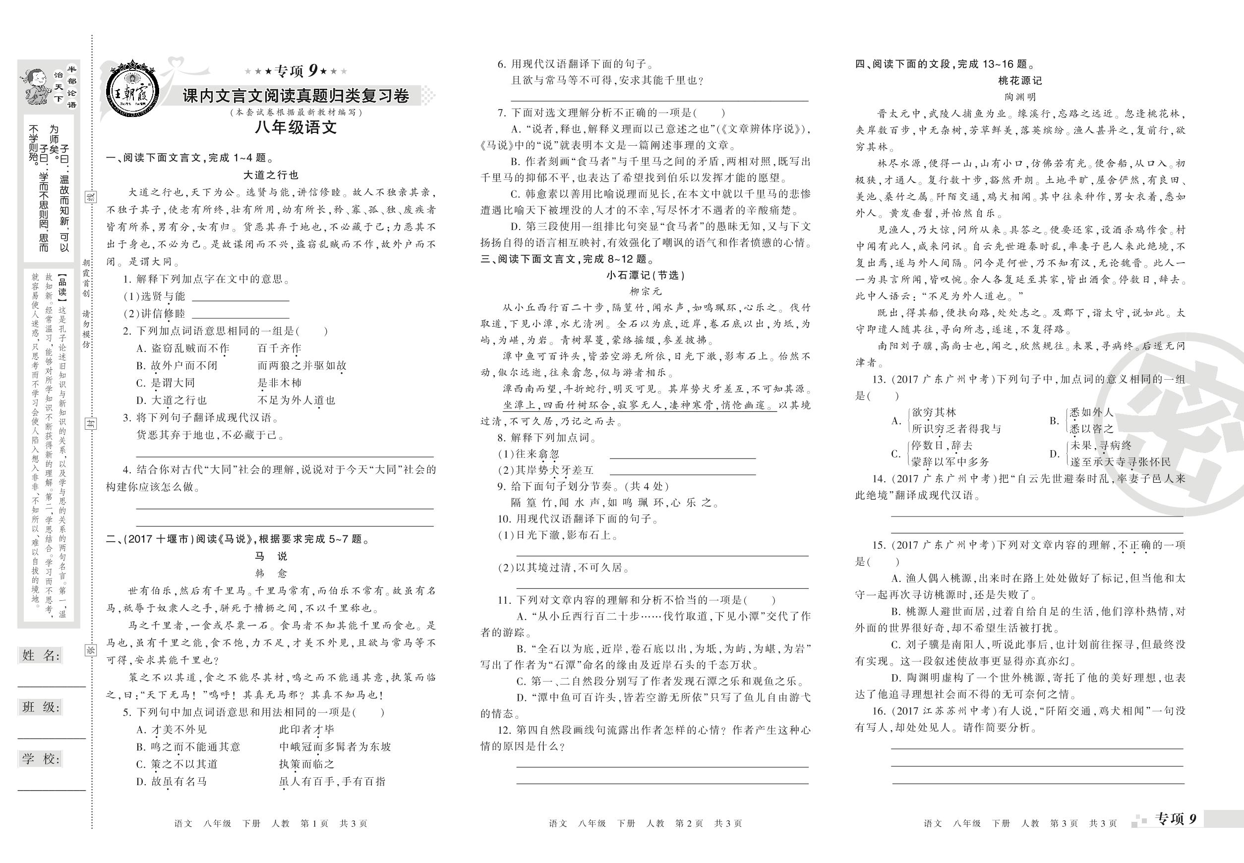 王朝霞期末专项卷——课内文言文阅读真题归类复习卷八年级下册语文(人教版)_R210802184602【0】