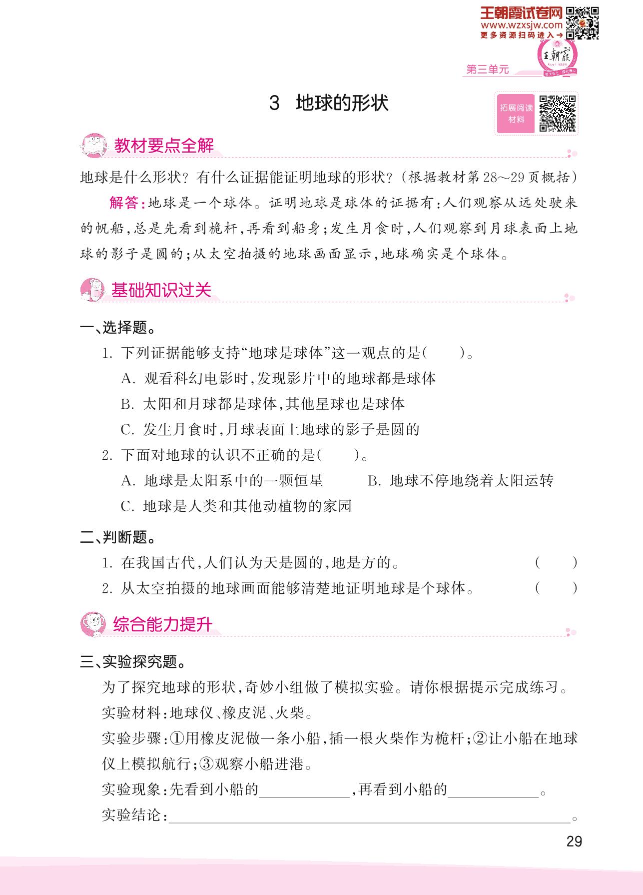2023下册四年级科学大象版 第三单元 太阳、地球和月球——3 地球的形状